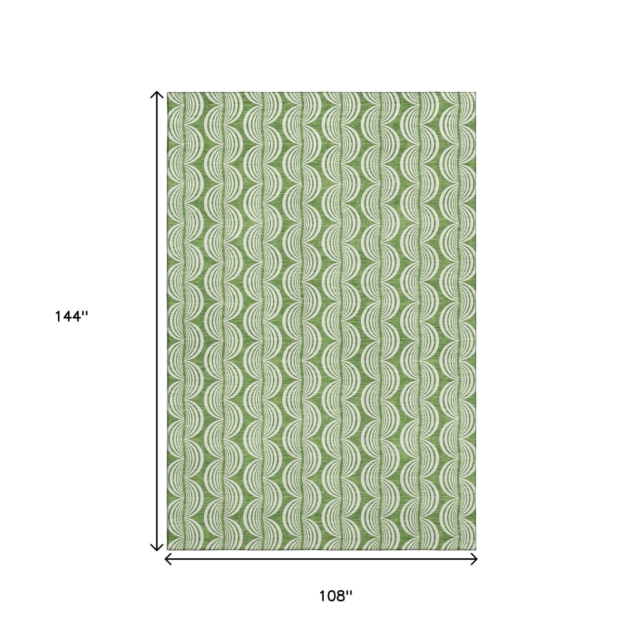 Add great coloration and comfortable texture to your space with this 9-foot x 12-foot green and ivory ogee washable area rug with uv protection. Ideal for spaces with kids and pets, this rug is stain resistant to help repel dirt and spilled liquids. Built to last, this rug crafted from polyester fibers is known for its durability and long lasting appeal. Rugs are a great way to showcase your style, hide imperfections, warm your home and reduce noise. This larger sized, transitional styled rug is ready to create a focal point or statement piece in your room. 108.00-inch h x 144.00-inch w x 0.39-inch d.