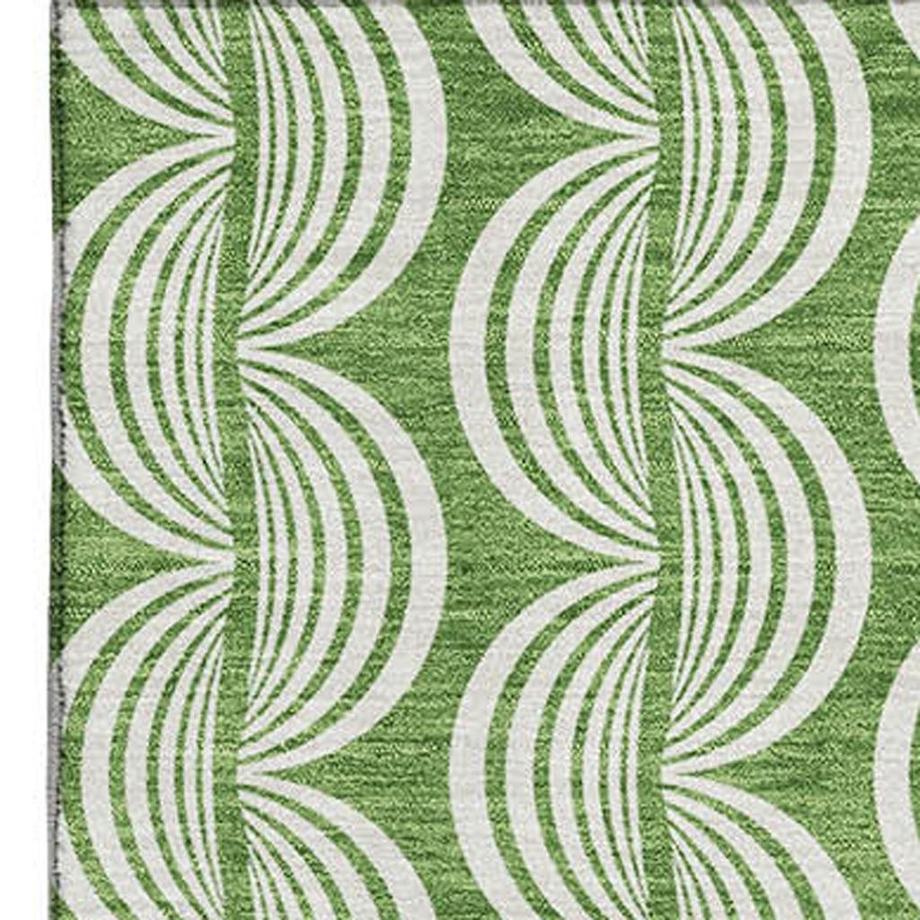 Add great coloration and comfortable texture to your space with this 10-foot x 14-foot green and ivory ogee washable area rug with uv protection. Ideal for spaces with kids and pets, this rug is stain resistant to help repel dirt and spilled liquids. Built to last, this rug crafted from polyester fibers is known for its durability and long lasting appeal. Rugs are a great way to showcase your style, hide imperfections, warm your home and reduce noise. This larger sized, transitional styled rug is ready to create a focal point or statement piece in your room. 120.00-inch h x 168.00-inch w x 0.39-inch d.