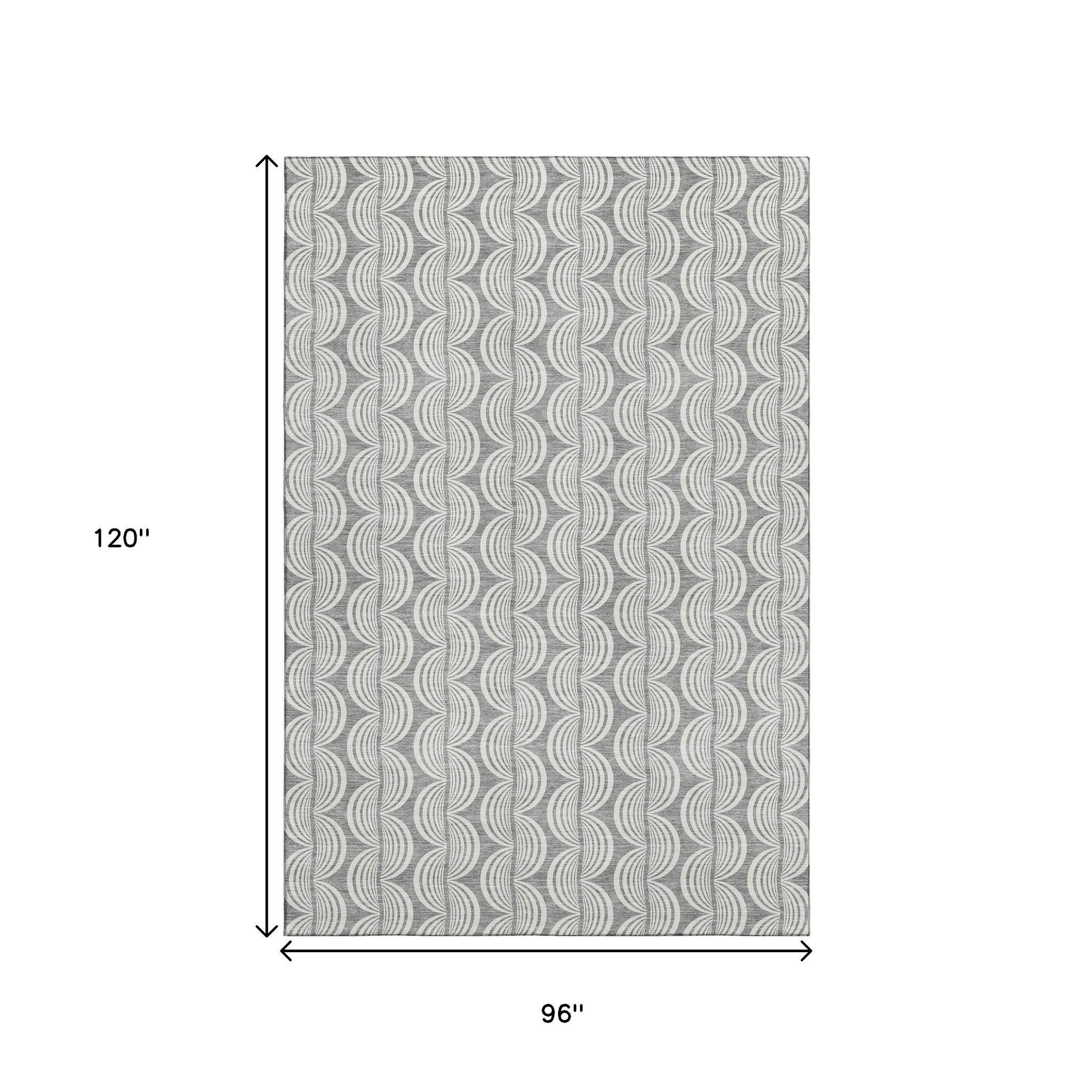 This 8-foot x 10-foot gray and ivory ogee washable area rug with uv protection, is a great way to add warmth to a room. Ideal for spaces with kids and pets, this rug is stain resistant to help repel dirt and spilled liquids. Built to last, this rug crafted from polyester fibers is known for its durability and long lasting appeal. Rugs are a great way to showcase your style, hide imperfections, warm your home and reduce noise. This larger sized, transitional styled rug is ready to create a focal point or statement piece in your room. 96.00-inch h x 120.00-inch w x 0.39-inch d.