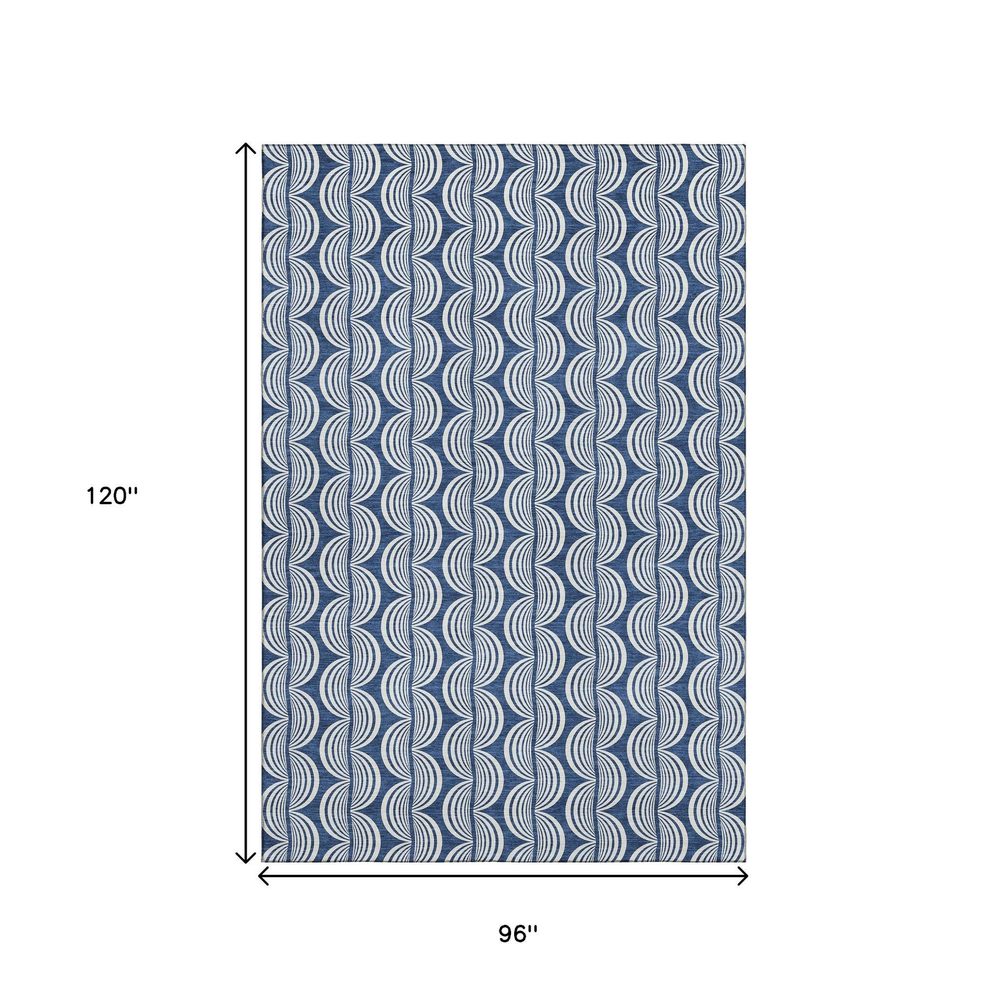 Add great coloration and comfortable texture to your space with this 8-foot x 10-foot navy blue and ivory ogee washable area rug with uv protection. Ideal for spaces with kids and pets, this rug is stain resistant to help repel dirt and spilled liquids. Built to last, this rug crafted from polyester fibers is known for its durability and long lasting appeal. Rugs are a great way to showcase your style, hide imperfections, warm your home and reduce noise. This larger sized, transitional styled rug is ready to create a focal point or statement piece in your room. 96.00-inch h x 120.00-inch w x 0.39-inch d.
