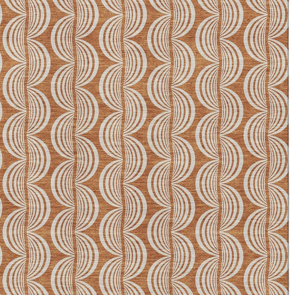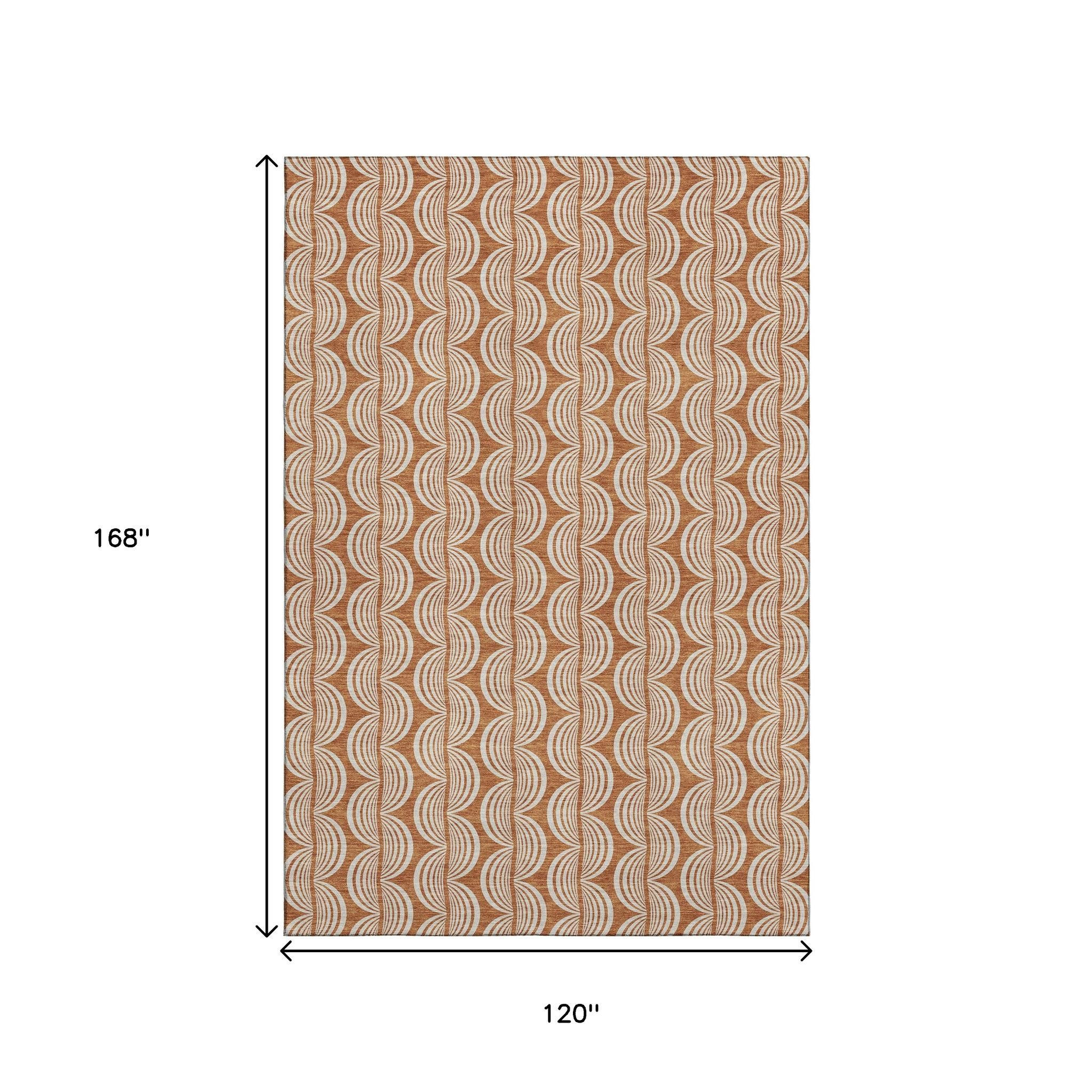 Add some artistry to your room with this 10-foot x 14-foot rust and beige ogee washable area rug with uv protection. Ideal for spaces with kids and pets, this rug is stain resistant to help repel dirt and spilled liquids. Built to last, this rug crafted from polyester fibers is known for its durability and long lasting appeal. Rugs are a great way to showcase your style, hide imperfections, warm your home and reduce noise. This larger sized, transitional styled rug is ready to create a focal point or statement piece in your room. 120.00-inch h x 168.00-inch w x 0.39-inch d.