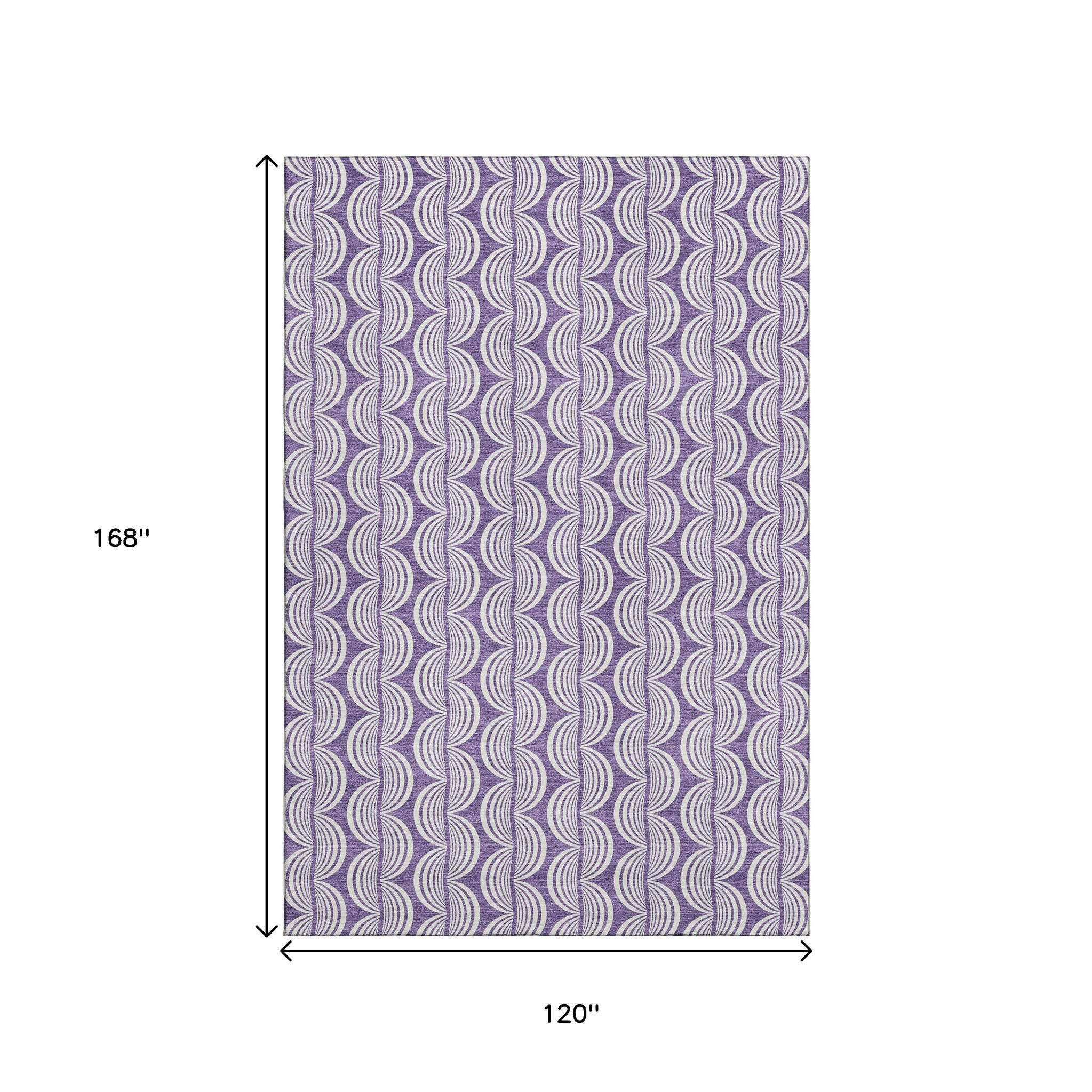 Add some artistry to your room with this 10-foot x 14-foot purple and ivory ogee washable area rug with uv protection. Ideal for spaces with kids and pets, this rug is stain resistant to help repel dirt and spilled liquids. Built to last, this rug crafted from polyester fibers is known for its durability and long lasting appeal. Rugs are a great way to showcase your style, hide imperfections, warm your home and reduce noise. This larger sized, transitional styled rug is ready to create a focal point or statement piece in your room. 120.00-inch h x 168.00-inch w x 0.39-inch d.