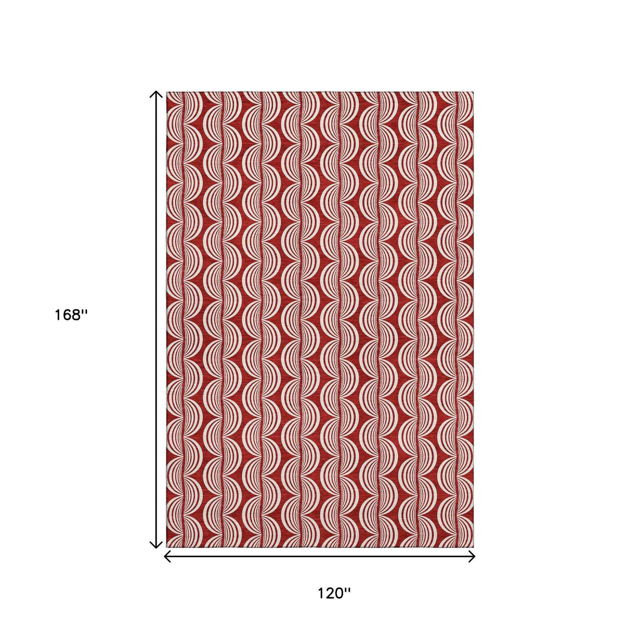 Add great coloration and comfortable texture to your space with this 10-foot x 14-foot red and ivory ogee washable area rug with uv protection. Ideal for spaces with kids and pets, this rug is stain resistant to help repel dirt and spilled liquids. Built to last, this rug crafted from polyester fibers is known for its durability and long lasting appeal. Rugs are a great way to showcase your style, hide imperfections, warm your home and reduce noise. This larger sized, transitional styled rug is ready to create a focal point or statement piece in your room. 120.00-inch h x 168.00-inch w x 0.39-inch d.