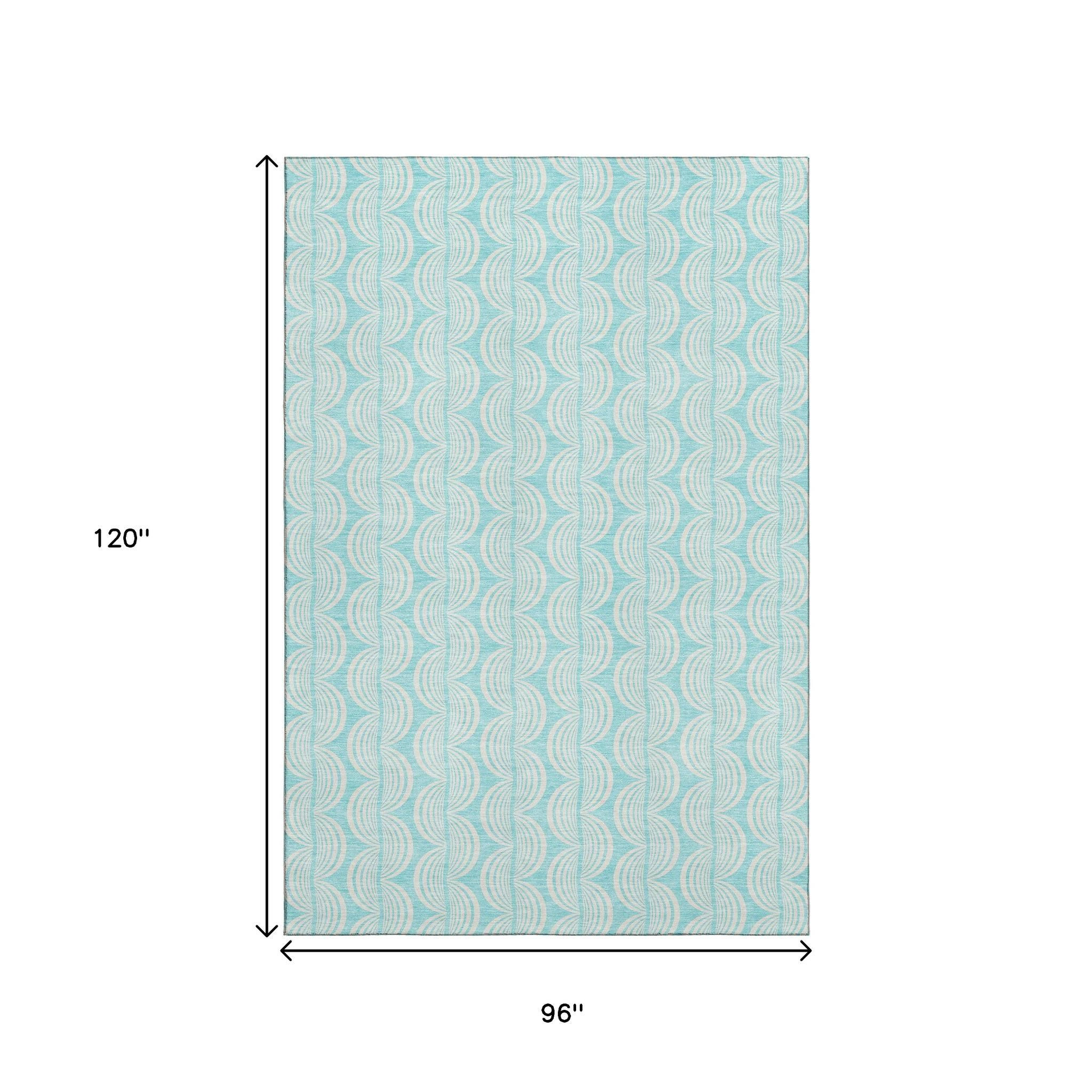 This 8-foot x 10-foot aqua and ivory ogee washable area rug with uv protection, is a great way to add warmth to a room. Ideal for spaces with kids and pets, this rug is stain resistant to help repel dirt and spilled liquids. Built to last, this rug crafted from polyester fibers is known for its durability and long lasting appeal. Rugs are a great way to showcase your style, hide imperfections, warm your home and reduce noise. This larger sized, transitional styled rug is ready to create a focal point or statement piece in your room. 96.00-inch h x 120.00-inch w x 0.39-inch d.