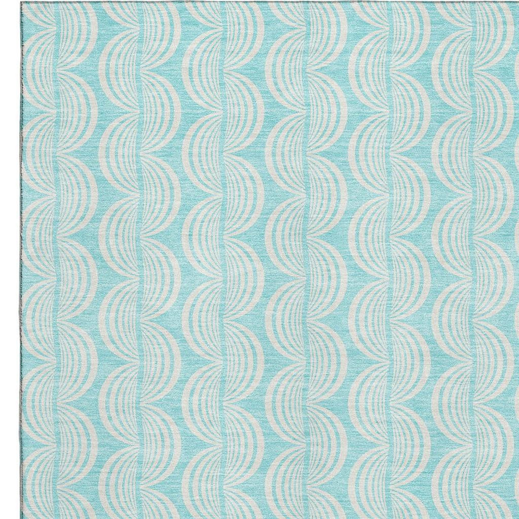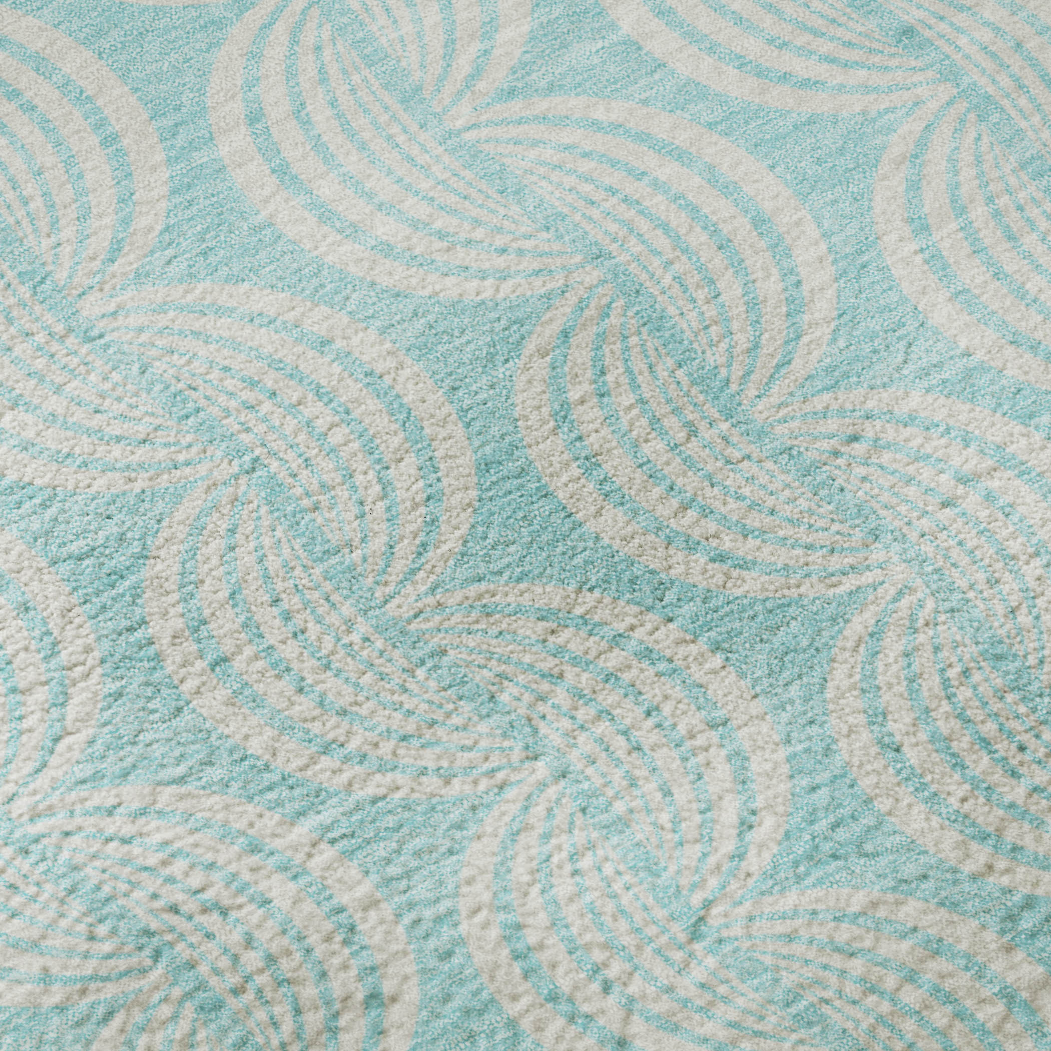 Set an inviting tone in your space with this 9-foot x 12-foot aqua and ivory ogee washable area rug with uv protection. Ideal for spaces with kids and pets, this rug is stain resistant to help repel dirt and spilled liquids. Built to last, this rug crafted from polyester fibers is known for its durability and long lasting appeal. Rugs are a great way to showcase your style, hide imperfections, warm your home and reduce noise. This larger sized, transitional styled rug is ready to create a focal point or statement piece in your room. 108.00-inch h x 144.00-inch w x 0.39-inch d.