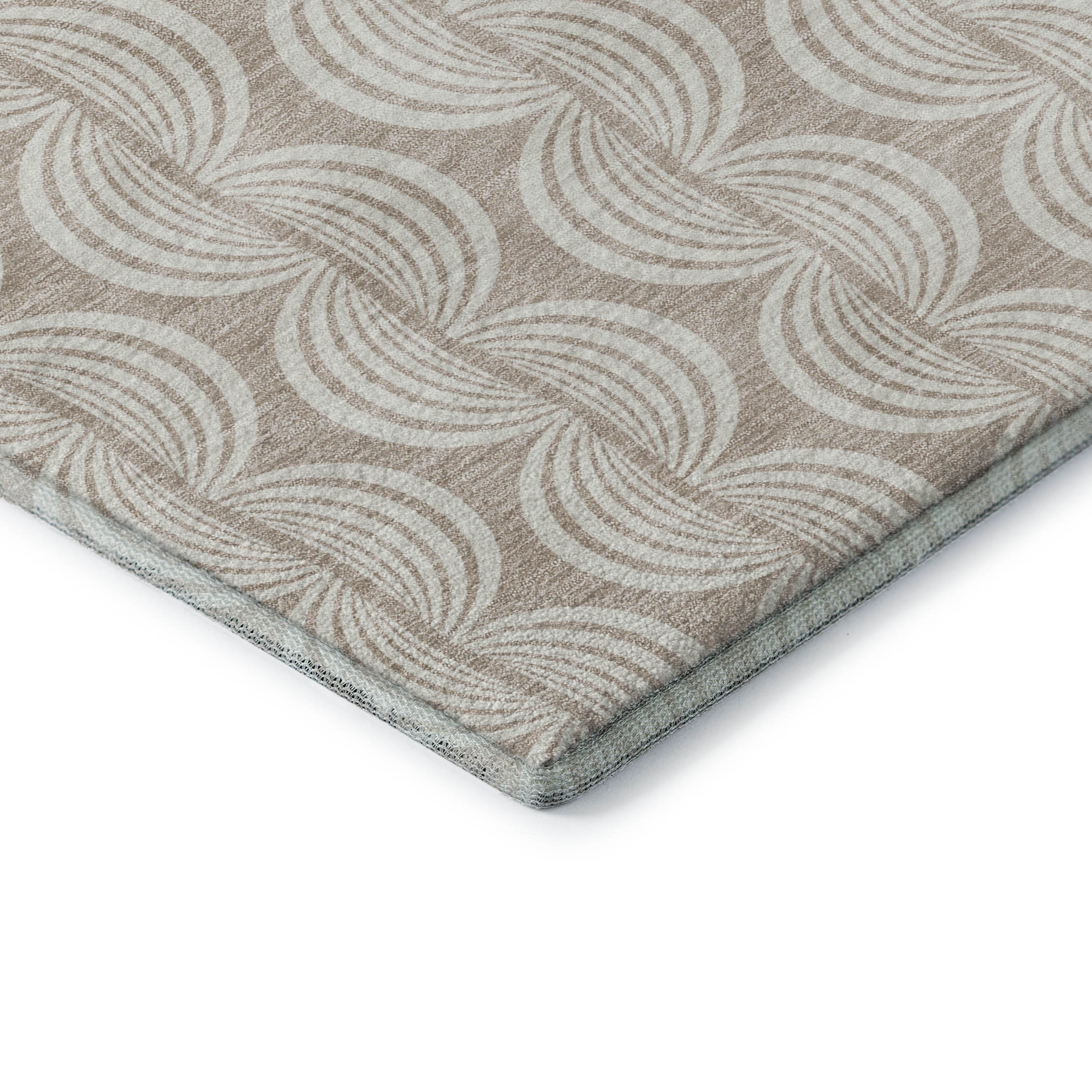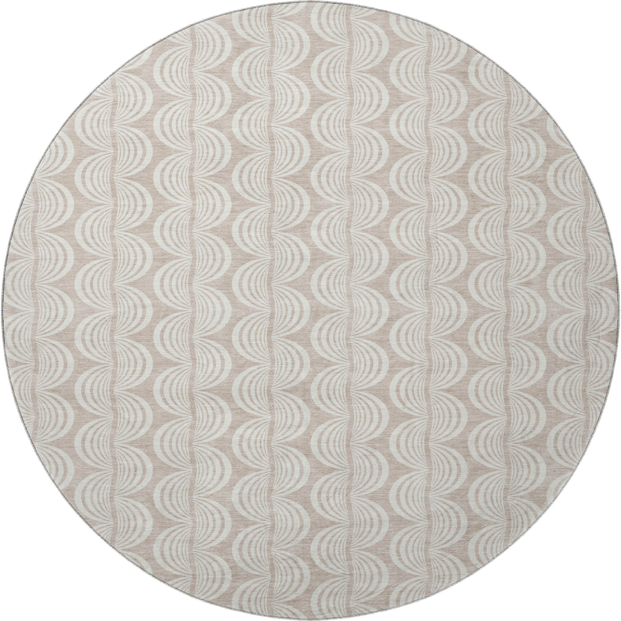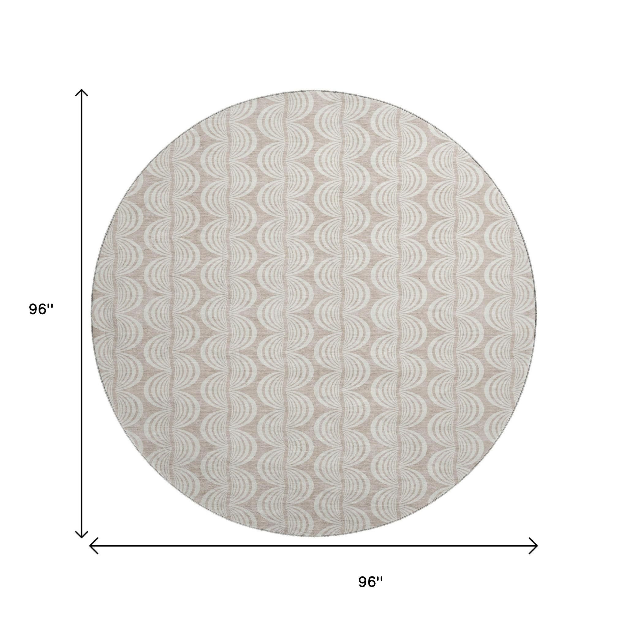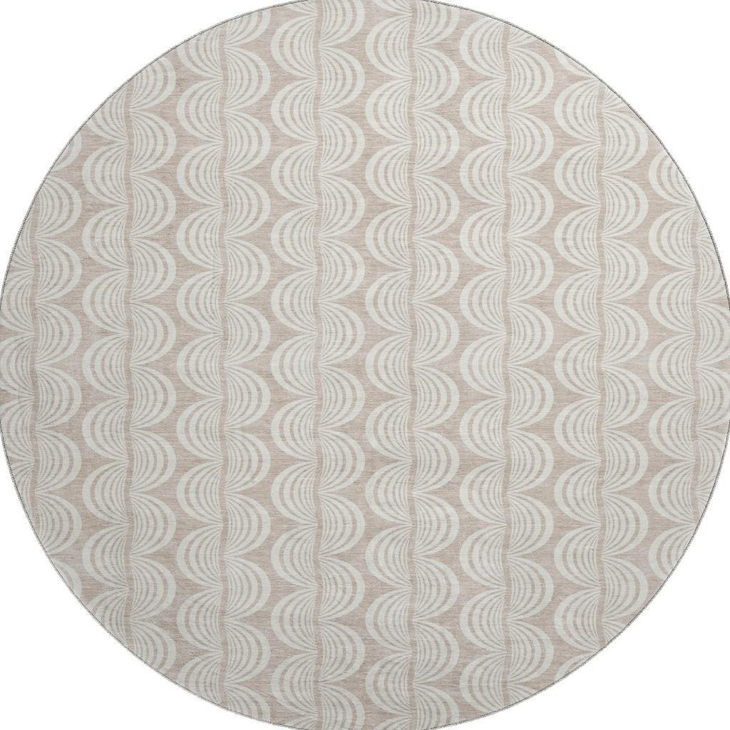 Add great coloration and comfortable texture to your space with this 8-foot khaki and ivory ogee washable round rug with uv protection. Ideal for spaces with kids and pets, this rug is stain resistant to help repel dirt and spilled liquids. Built to last, this rug crafted from polyester fibers is known for its durability and long lasting appeal. Rugs are a great way to showcase your style, hide imperfections, warm your home and reduce noise. This larger sized, transitional styled rug is ready to create a focal point or statement piece in your room. 96.00-inch h x 96.00-inch w x 0.39-inch d.