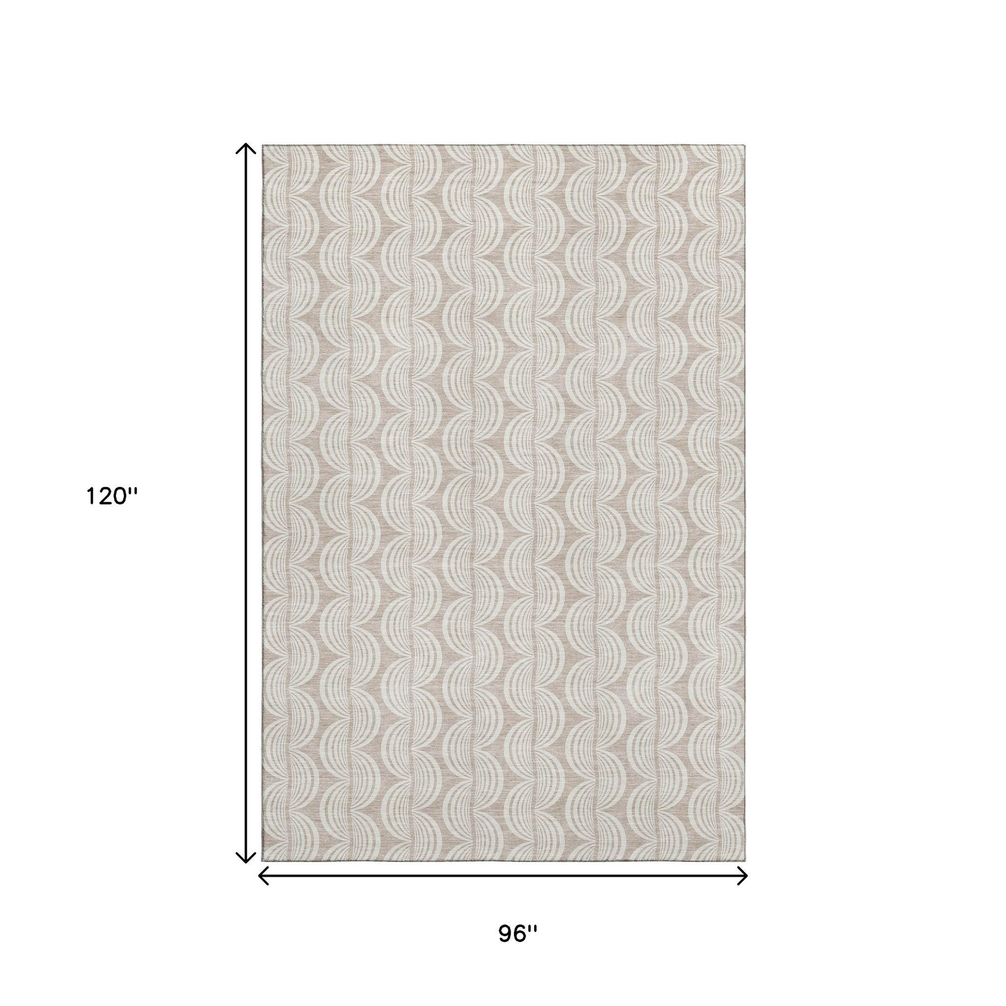 Add great coloration and comfortable texture to your space with this 8-foot x 10-foot khaki and ivory ogee washable area rug with uv protection. Ideal for spaces with kids and pets, this rug is stain resistant to help repel dirt and spilled liquids. Built to last, this rug crafted from polyester fibers is known for its durability and long lasting appeal. Rugs are a great way to showcase your style, hide imperfections, warm your home and reduce noise. This larger sized, transitional styled rug is ready to create a focal point or statement piece in your room. 96.00-inch h x 120.00-inch w x 0.39-inch d.