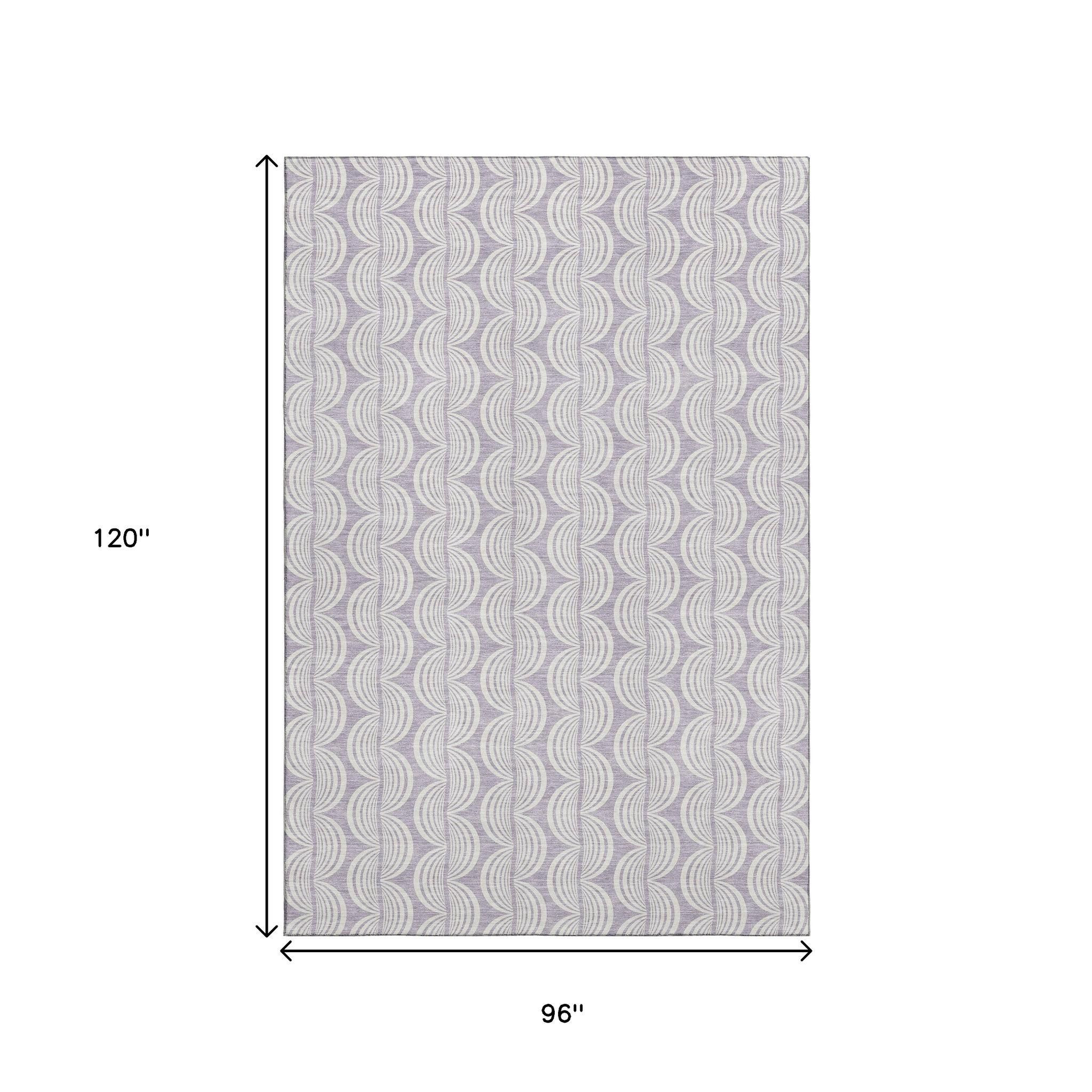 This 8-foot x 10-foot lavender and ivory ogee washable area rug with uv protection, is a great way to add warmth to a room. Ideal for spaces with kids and pets, this rug is stain resistant to help repel dirt and spilled liquids. Built to last, this rug crafted from polyester fibers is known for its durability and long lasting appeal. Rugs are a great way to showcase your style, hide imperfections, warm your home and reduce noise. This larger sized, transitional styled rug is ready to create a focal point or statement piece in your room. 96.00-inch h x 120.00-inch w x 0.39-inch d.
