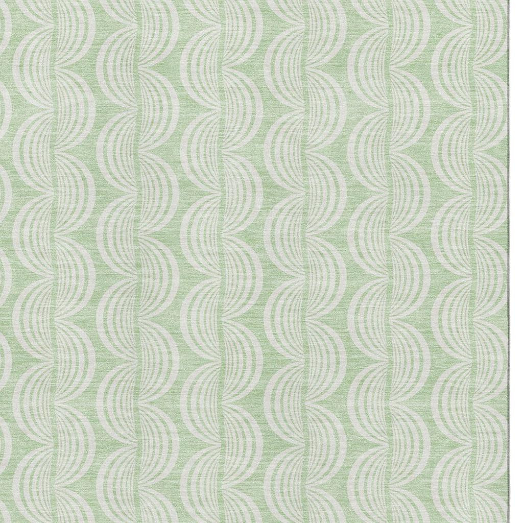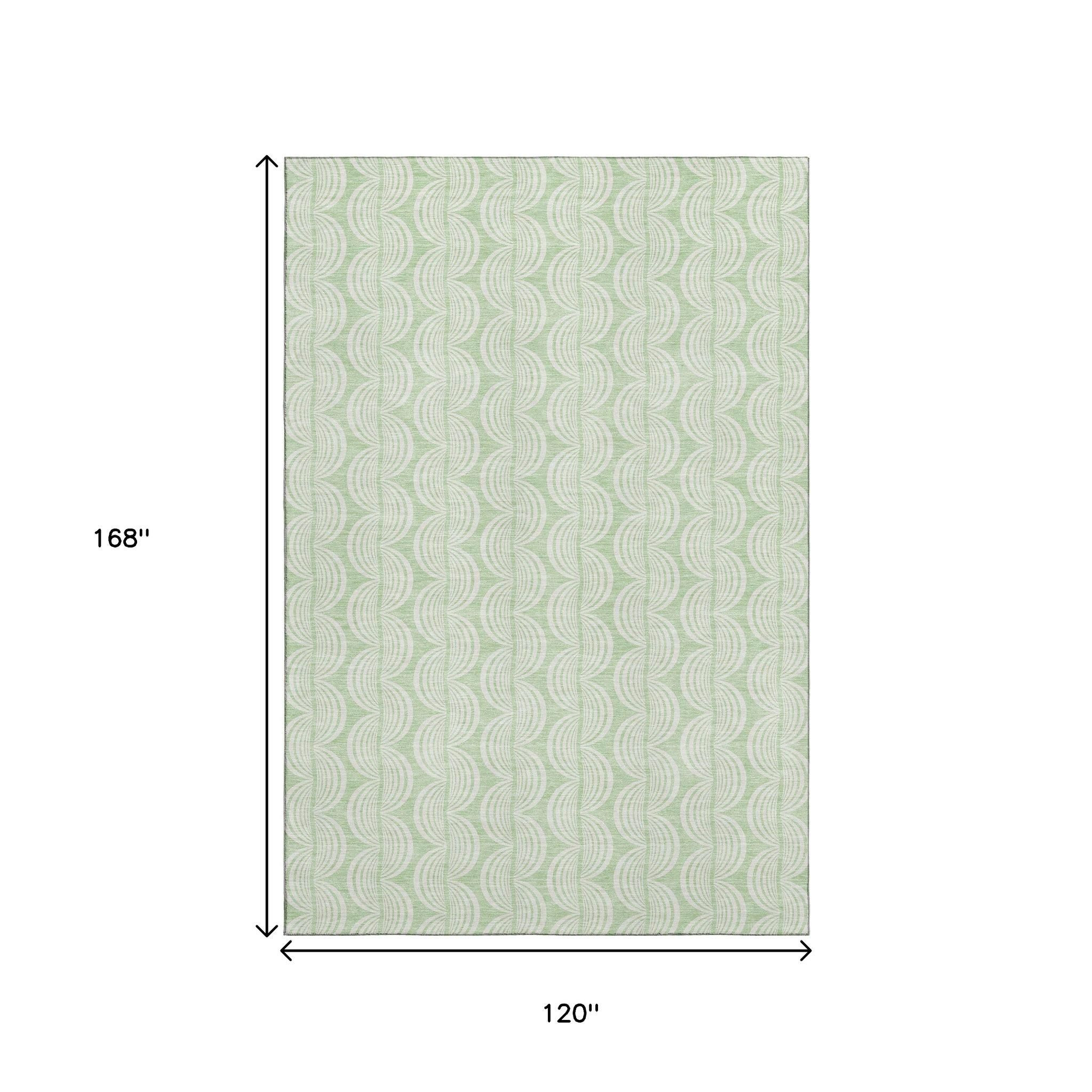 Add some artistry to your room with this 10-foot x 14-foot mint green and ivory ogee washable area rug with uv protection. Ideal for spaces with kids and pets, this rug is stain resistant to help repel dirt and spilled liquids. Built to last, this rug crafted from polyester fibers is known for its durability and long lasting appeal. Rugs are a great way to showcase your style, hide imperfections, warm your home and reduce noise. This larger sized, transitional styled rug is ready to create a focal point or statement piece in your room. 120.00-inch h x 168.00-inch w x 0.39-inch d.