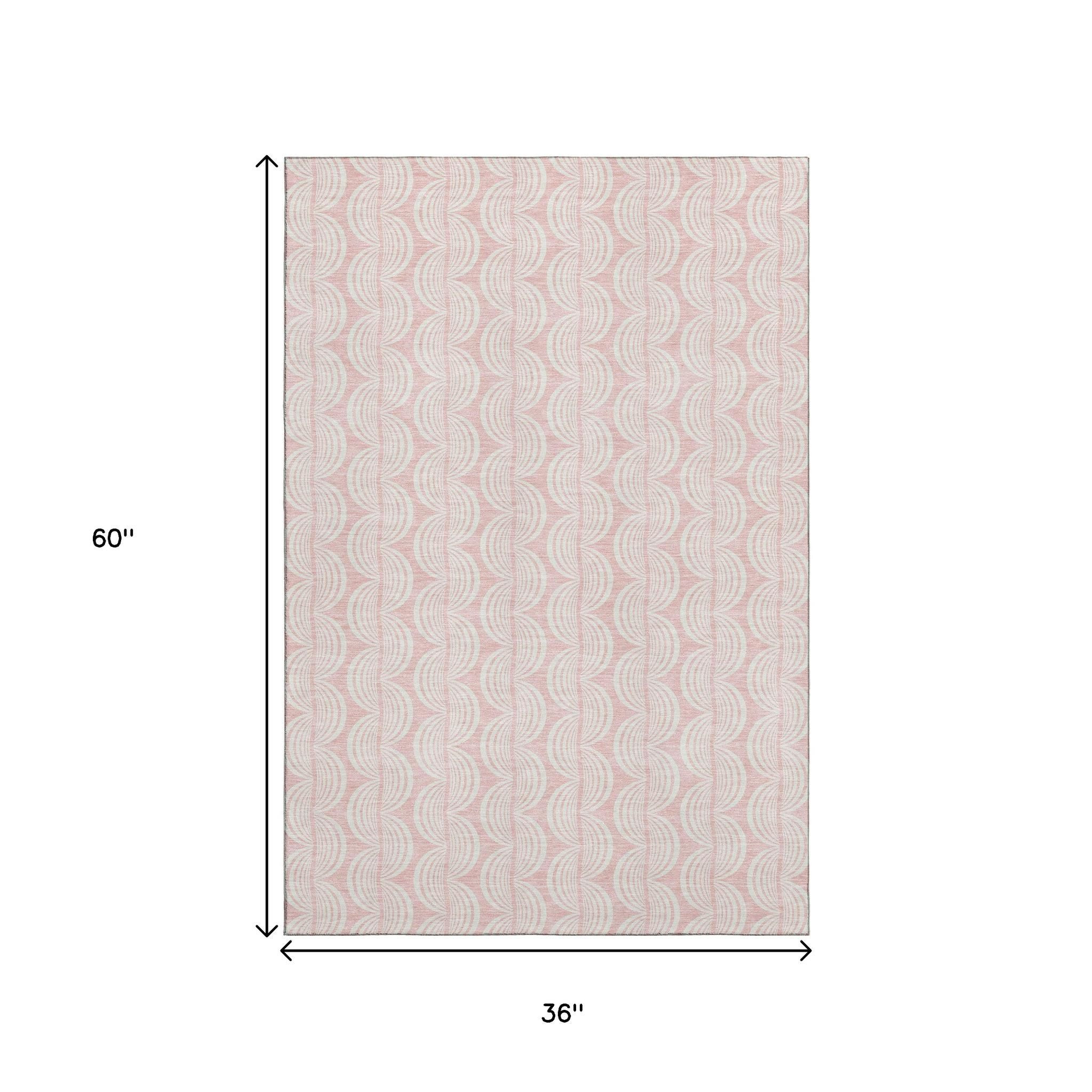 This 3-foot x 5-foot pink and ivory ogee washable area rug with uv protection, is a great way to add warmth to a room. Ideal for spaces with kids and pets, this rug is stain resistant to help repel dirt and spilled liquids. Built to last, this rug crafted from polyester fibers is known for its durability and long lasting appeal. Rugs are a great way to showcase your style, hide imperfections, warm your home and reduce noise. This smaller sized, transitional styled rug is just what you need for your walkway, bedside, in front of door, cabinet, refrigerator, or chair. 36.00-inch h x 60.00-inch w x 0.39-inch d.