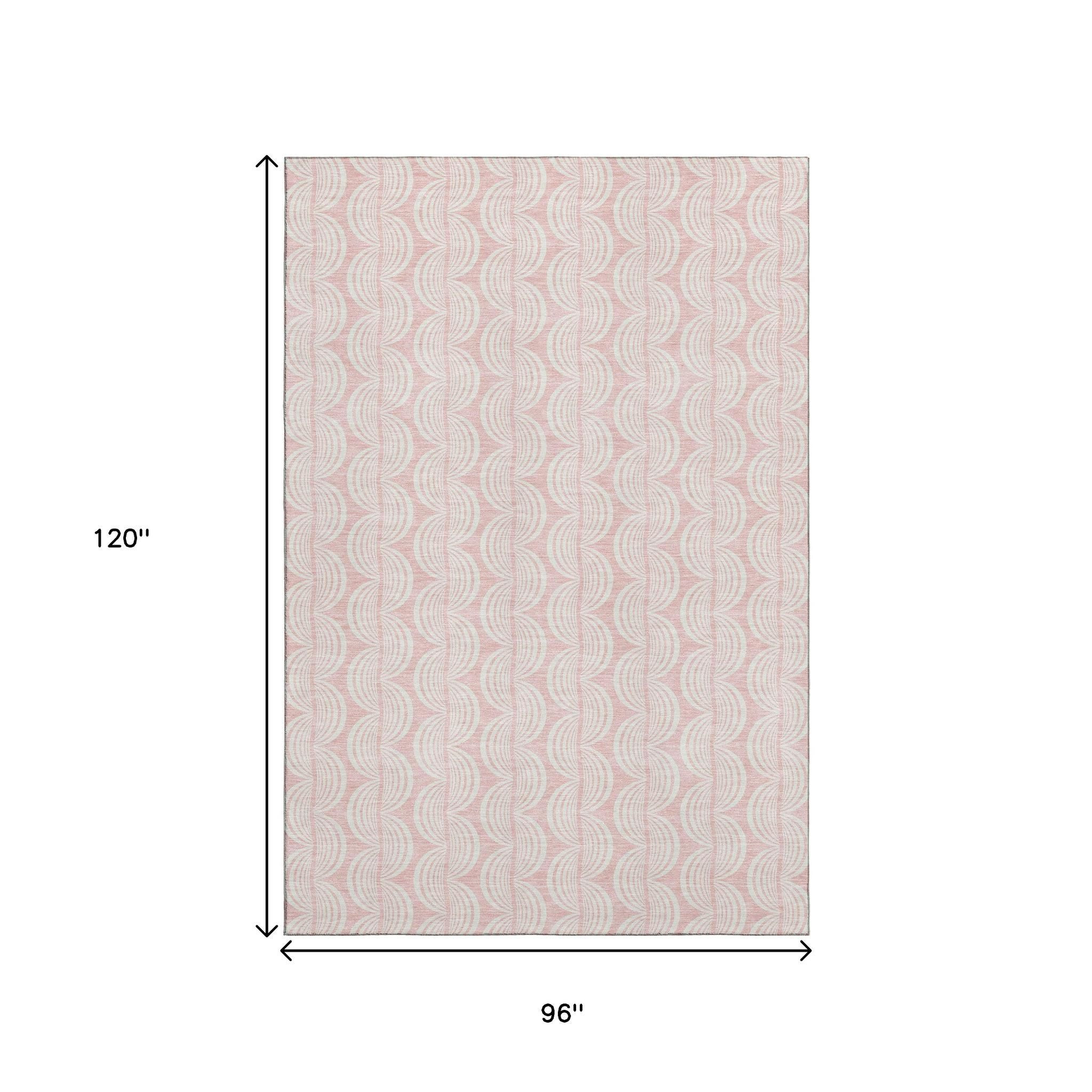 Add some artistry to your room with this 8-foot x 10-foot pink and ivory ogee washable area rug with uv protection. Ideal for spaces with kids and pets, this rug is stain resistant to help repel dirt and spilled liquids. Built to last, this rug crafted from polyester fibers is known for its durability and long lasting appeal. Rugs are a great way to showcase your style, hide imperfections, warm your home and reduce noise. This larger sized, transitional styled rug is ready to create a focal point or statement piece in your room. 96.00-inch h x 120.00-inch w x 0.39-inch d.