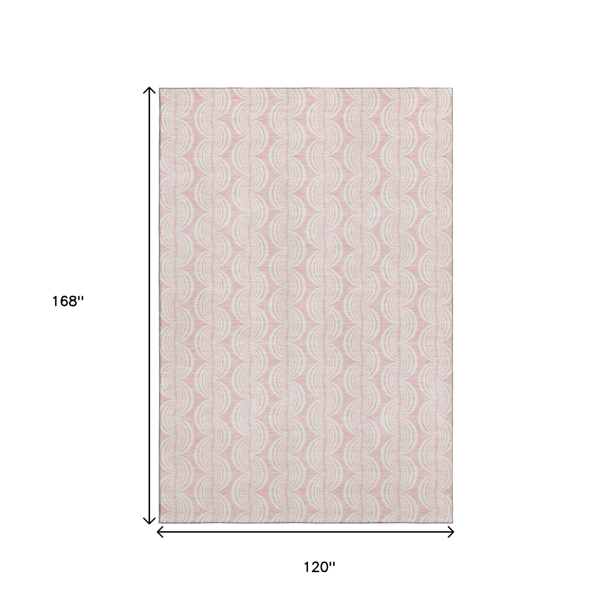 This 10-foot x 14-foot pink and ivory ogee washable area rug with uv protection, is a great way to add warmth to a room. Ideal for spaces with kids and pets, this rug is stain resistant to help repel dirt and spilled liquids. Built to last, this rug crafted from polyester fibers is known for its durability and long lasting appeal. Rugs are a great way to showcase your style, hide imperfections, warm your home and reduce noise. This larger sized, transitional styled rug is ready to create a focal point or statement piece in your room. 120.00-inch h x 168.00-inch w x 0.39-inch d.