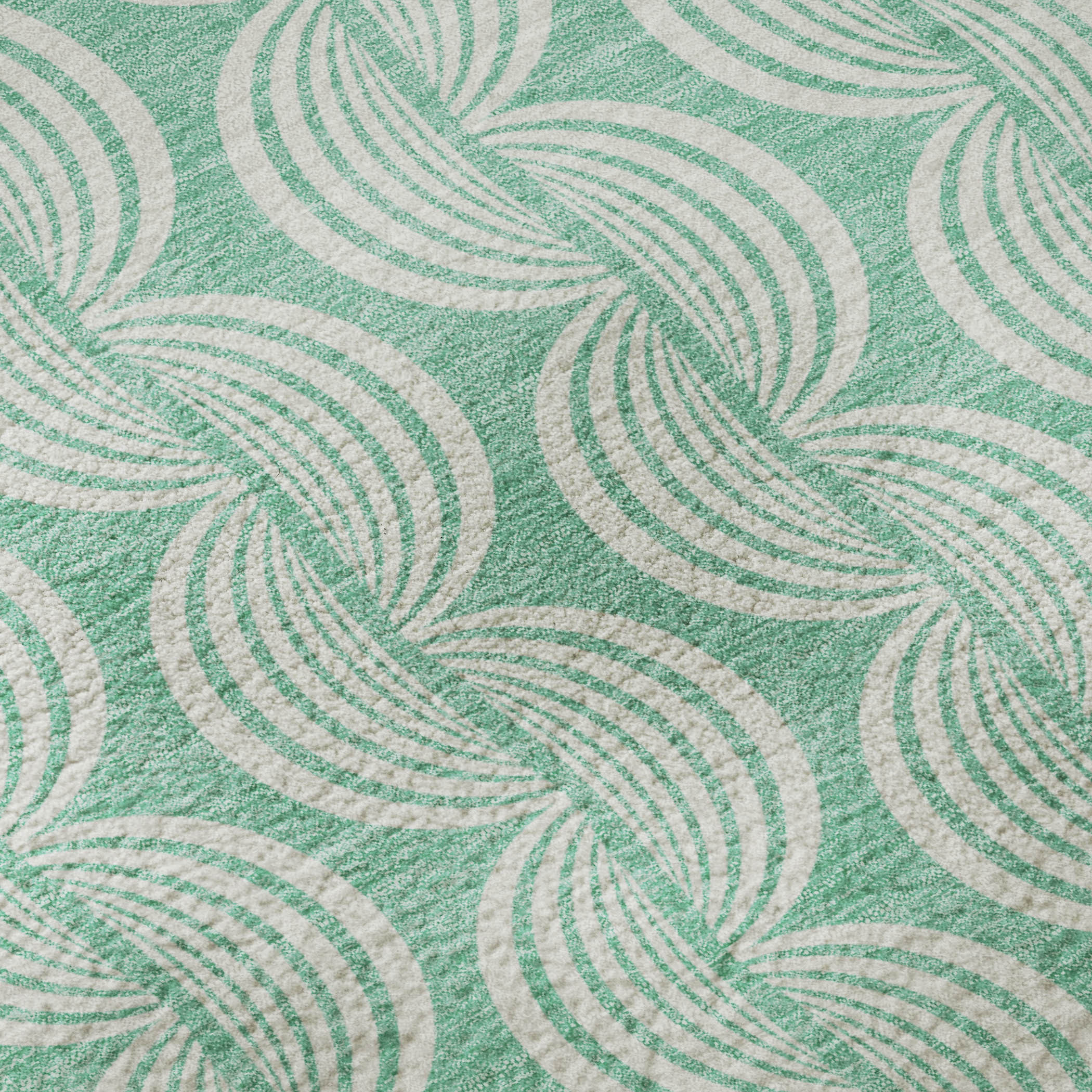 This 3-foot x 5-foot aqua and ivory ogee washable area rug with uv protection, is a great way to add warmth to a room. Ideal for spaces with kids and pets, this rug is stain resistant to help repel dirt and spilled liquids. Built to last, this rug crafted from polyester fibers is known for its durability and long lasting appeal. Rugs are a great way to showcase your style, hide imperfections, warm your home and reduce noise. This smaller sized, transitional styled rug is just what you need for your walkway, bedside, in front of door, cabinet, refrigerator, or chair. 36.00-inch h x 60.00-inch w x 0.39-inch d.