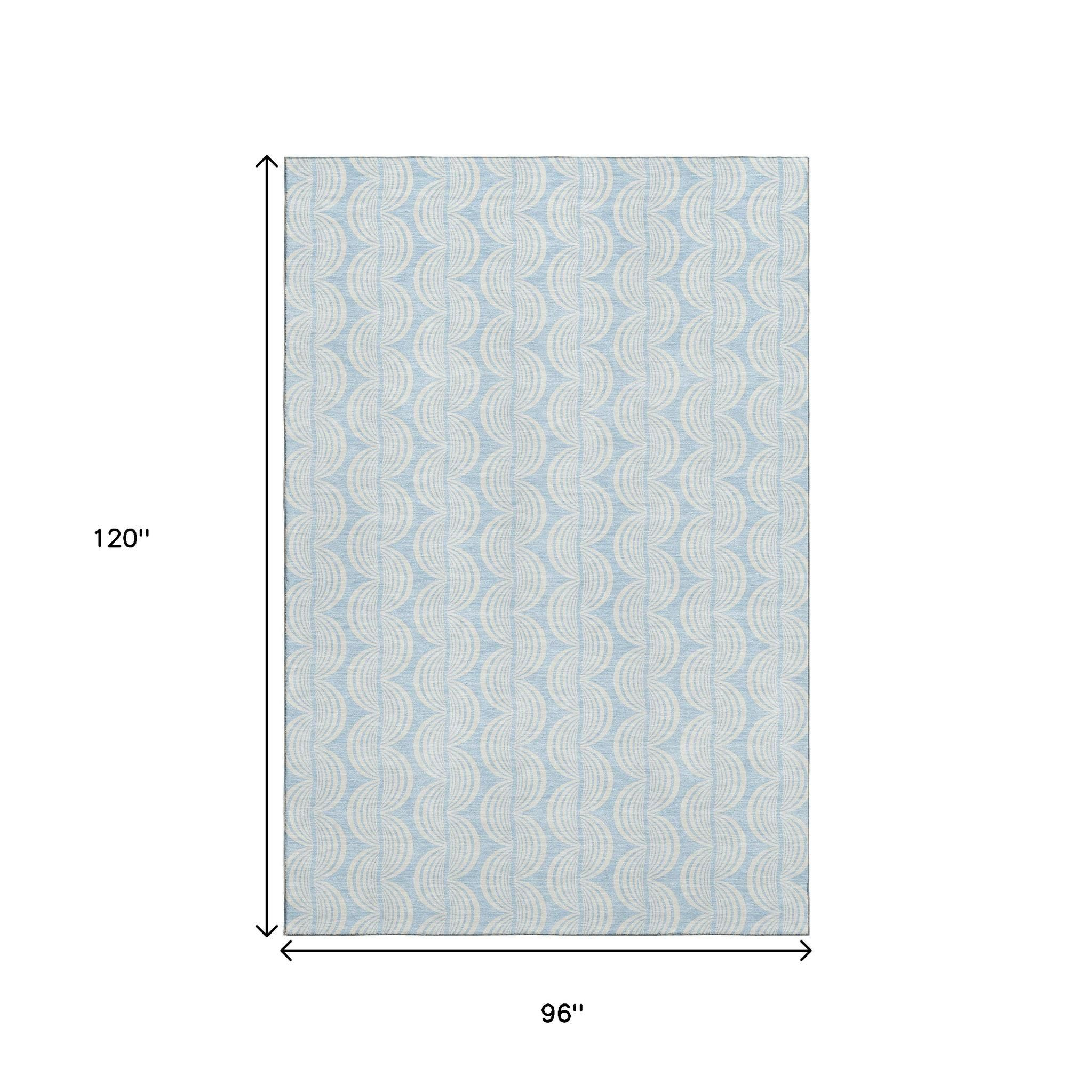 Set an inviting tone in your space with this 8-foot x 10-foot sky blue and ivory ogee washable area rug with uv protection. Ideal for spaces with kids and pets, this rug is stain resistant to help repel dirt and spilled liquids. Built to last, this rug crafted from polyester fibers is known for its durability and long lasting appeal. Rugs are a great way to showcase your style, hide imperfections, warm your home and reduce noise. This larger sized, transitional styled rug is ready to create a focal point or statement piece in your room. 96.00-inch h x 120.00-inch w x 0.39-inch d.