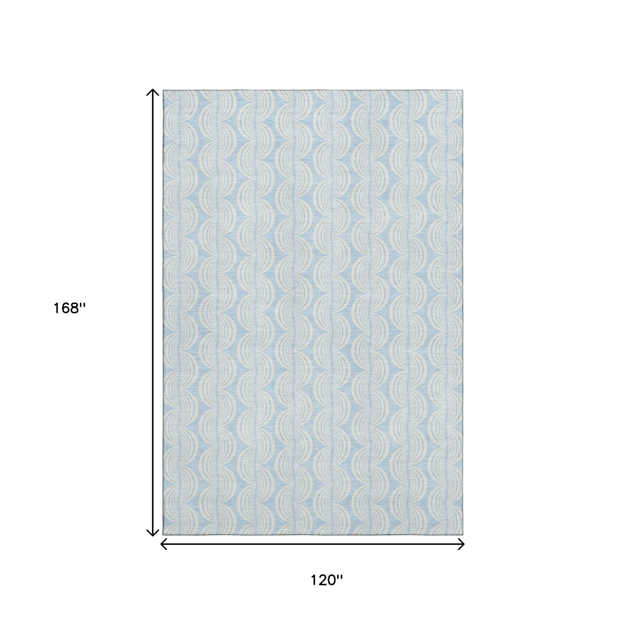 Set an inviting tone in your space with this 10-foot x 14-foot sky blue and ivory ogee washable area rug with uv protection. Ideal for spaces with kids and pets, this rug is stain resistant to help repel dirt and spilled liquids. Built to last, this rug crafted from polyester fibers is known for its durability and long lasting appeal. Rugs are a great way to showcase your style, hide imperfections, warm your home and reduce noise. This larger sized, transitional styled rug is ready to create a focal point or statement piece in your room. 120.00-inch h x 168.00-inch w x 0.39-inch d.