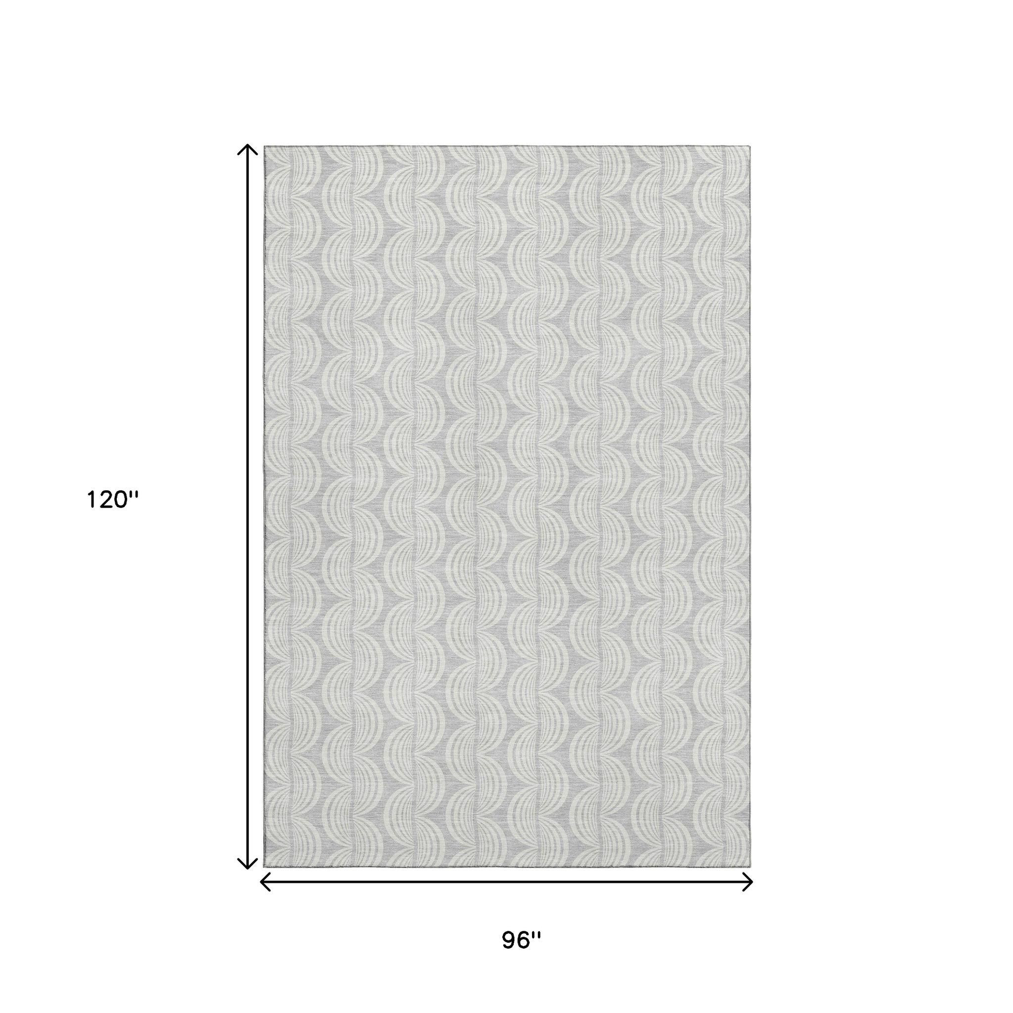Add great coloration and comfortable texture to your space with this 8-foot x 10-foot silver and ivory ogee washable area rug with uv protection. Ideal for spaces with kids and pets, this rug is stain resistant to help repel dirt and spilled liquids. Built to last, this rug crafted from polyester fibers is known for its durability and long lasting appeal. Rugs are a great way to showcase your style, hide imperfections, warm your home and reduce noise. This larger sized, transitional styled rug is ready to create a focal point or statement piece in your room. 96.00-inch h x 120.00-inch w x 0.39-inch d.