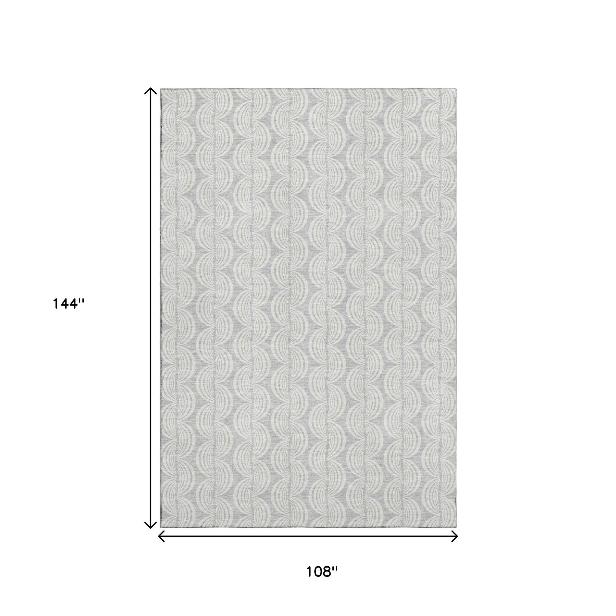 Add great coloration and comfortable texture to your space with this 9-foot x 12-foot silver and ivory ogee washable area rug with uv protection. Ideal for spaces with kids and pets, this rug is stain resistant to help repel dirt and spilled liquids. Built to last, this rug crafted from polyester fibers is known for its durability and long lasting appeal. Rugs are a great way to showcase your style, hide imperfections, warm your home and reduce noise. This larger sized, transitional styled rug is ready to create a focal point or statement piece in your room. 108.00-inch h x 144.00-inch w x 0.39-inch d.