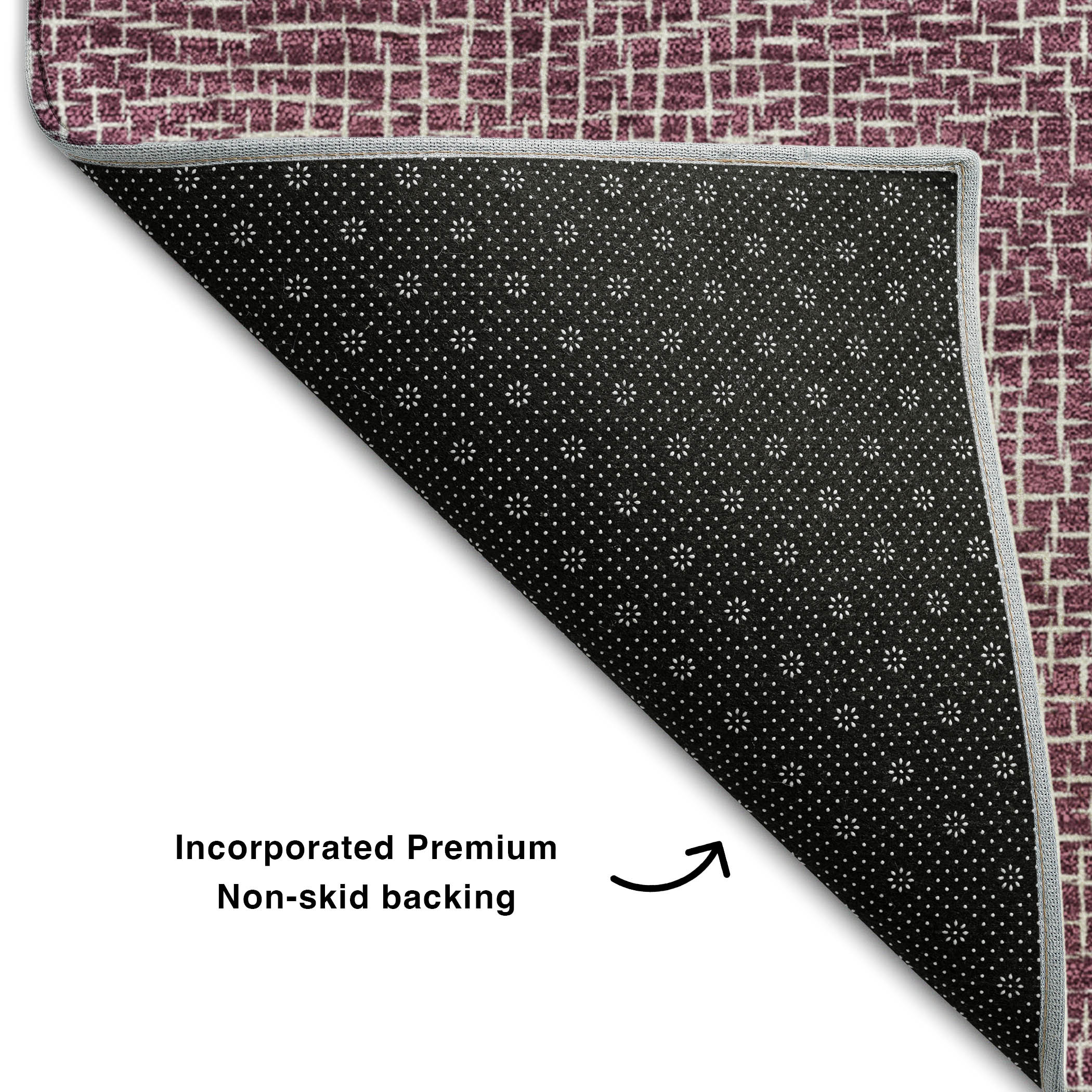 Add great coloration and comfortable texture to your space with this 10-foot x 14-foot eggplant and ivory geometric washable area rug with uv protection. Ideal for spaces with kids and pets, this rug is stain resistant to help repel dirt and spilled liquids. Built to last, this rug crafted from polyester fibers is known for its durability and long lasting appeal. Rugs are a great way to showcase your style, hide imperfections, warm your home and reduce noise. This larger sized, transitional styled rug is ready to create a focal point or statement piece in your room. 120.00-inch h x 168.00-inch w x 0.39-inch d.