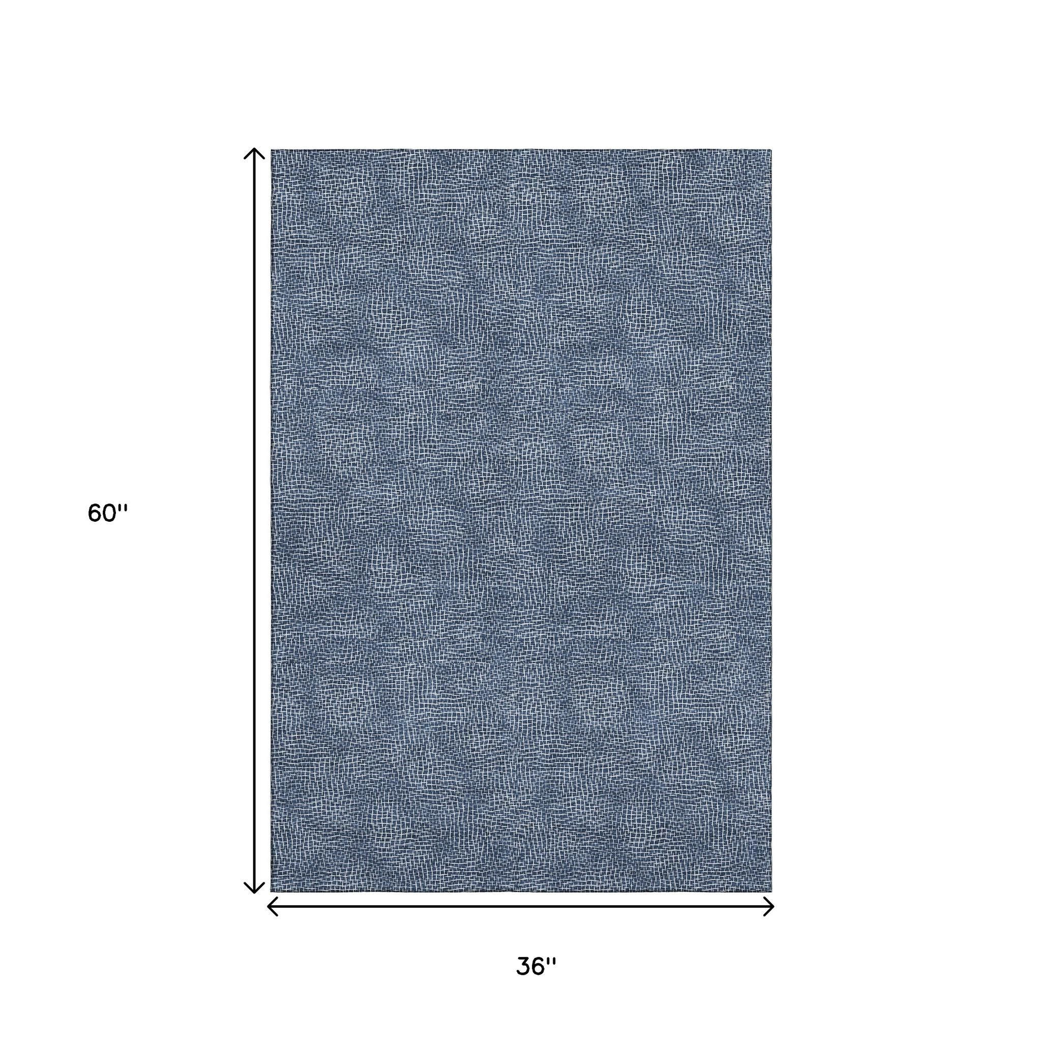 Add great coloration and comfortable texture to your space with this 3-foot x 5-foot navy blue and ivory geometric washable area rug with uv protection. Ideal for spaces with kids and pets, this rug is stain resistant to help repel dirt and spilled liquids. Built to last, this rug crafted from polyester fibers is known for its durability and long lasting appeal. Rugs are a great way to showcase your style, hide imperfections, warm your home and reduce noise. This smaller sized, transitional styled rug is just what you need for your walkway, bedside, in front of door, cabinet, refrigerator, or chair. 36.00-inch h x 60.00-inch w x 0.39-inch d.
