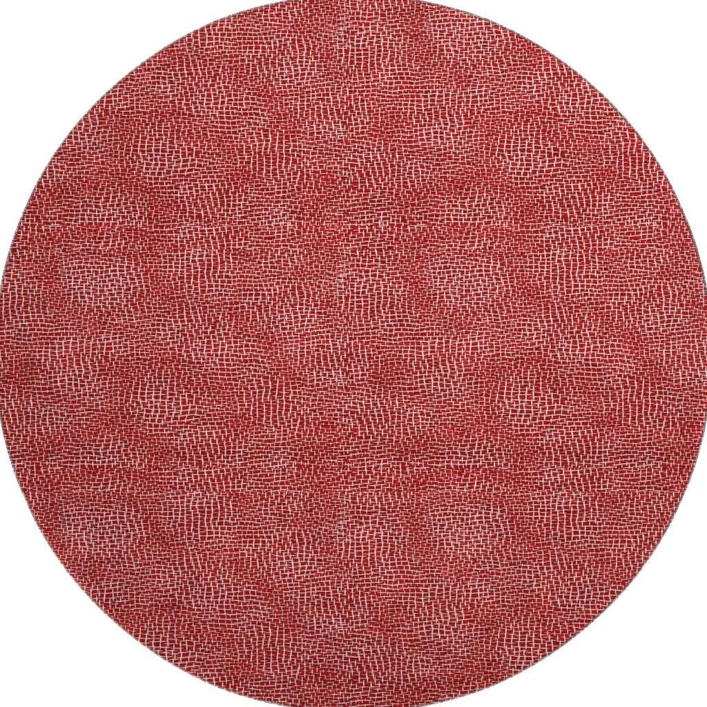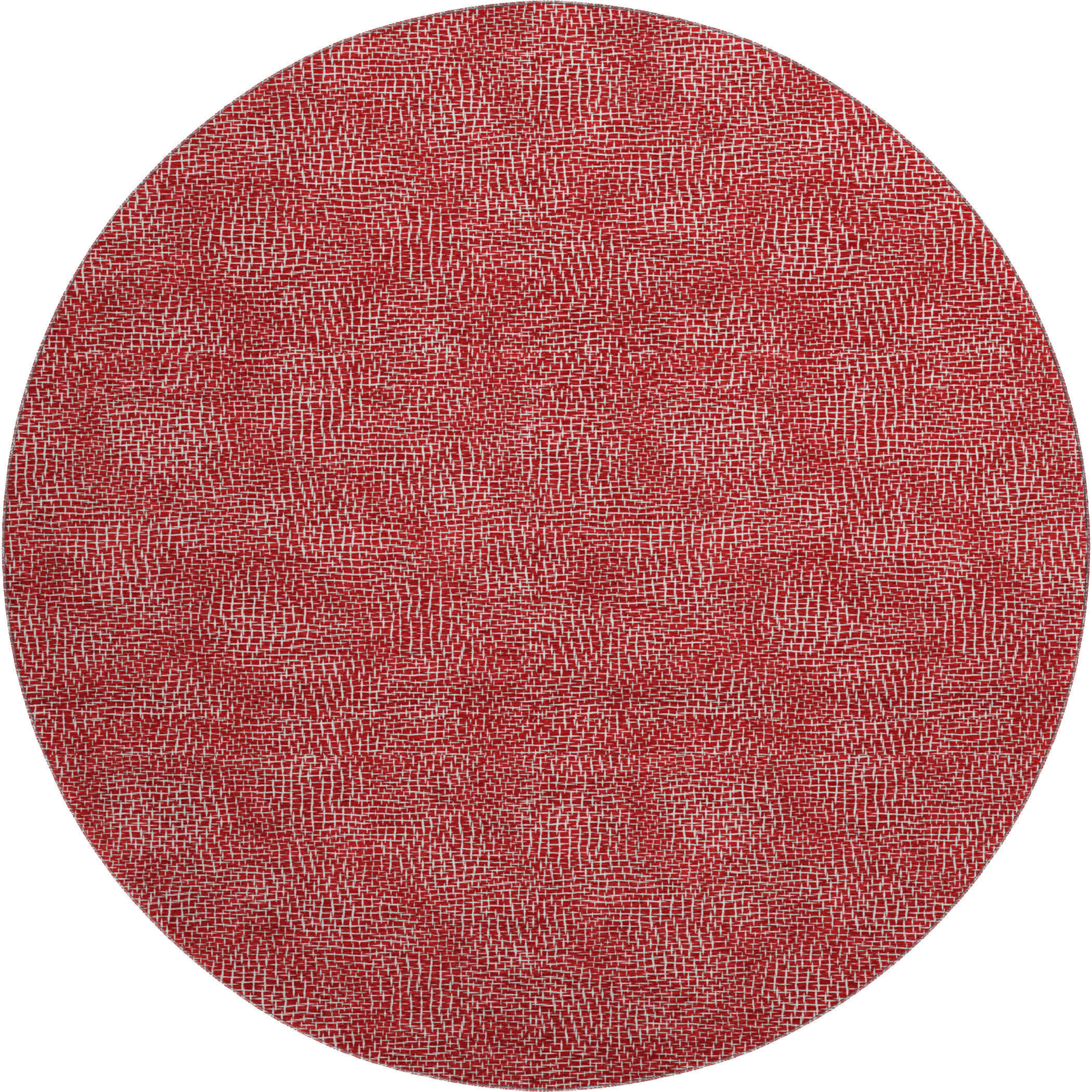 Set an inviting tone in your space with this 8-foot red and ivory geometric washable round rug with uv protection. Ideal for spaces with kids and pets, this rug is stain resistant to help repel dirt and spilled liquids. Built to last, this rug crafted from polyester fibers is known for its durability and long lasting appeal. Rugs are a great way to showcase your style, hide imperfections, warm your home and reduce noise. This larger sized, transitional styled rug is ready to create a focal point or statement piece in your room. 96.00-inch h x 96.00-inch w x 0.39-inch d.