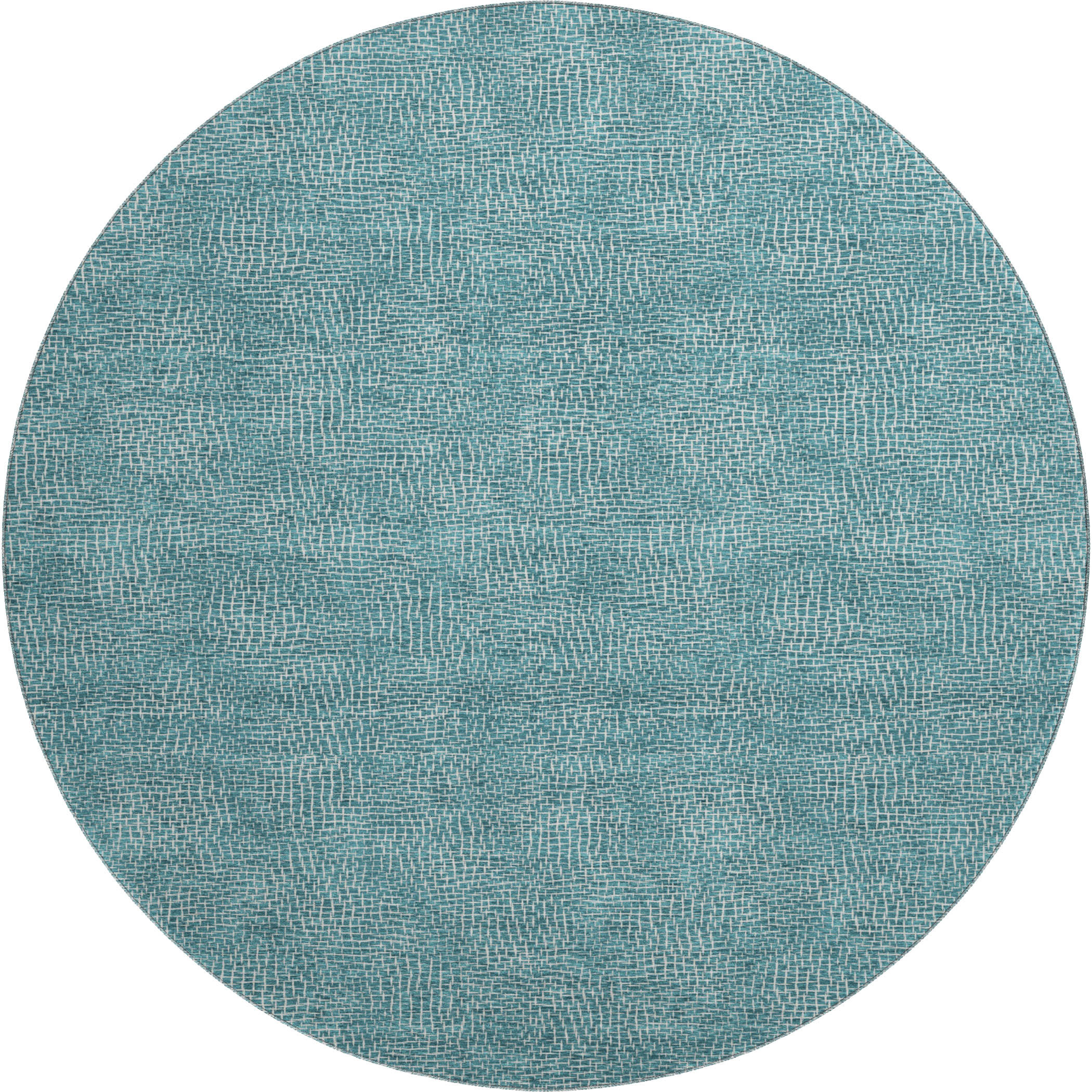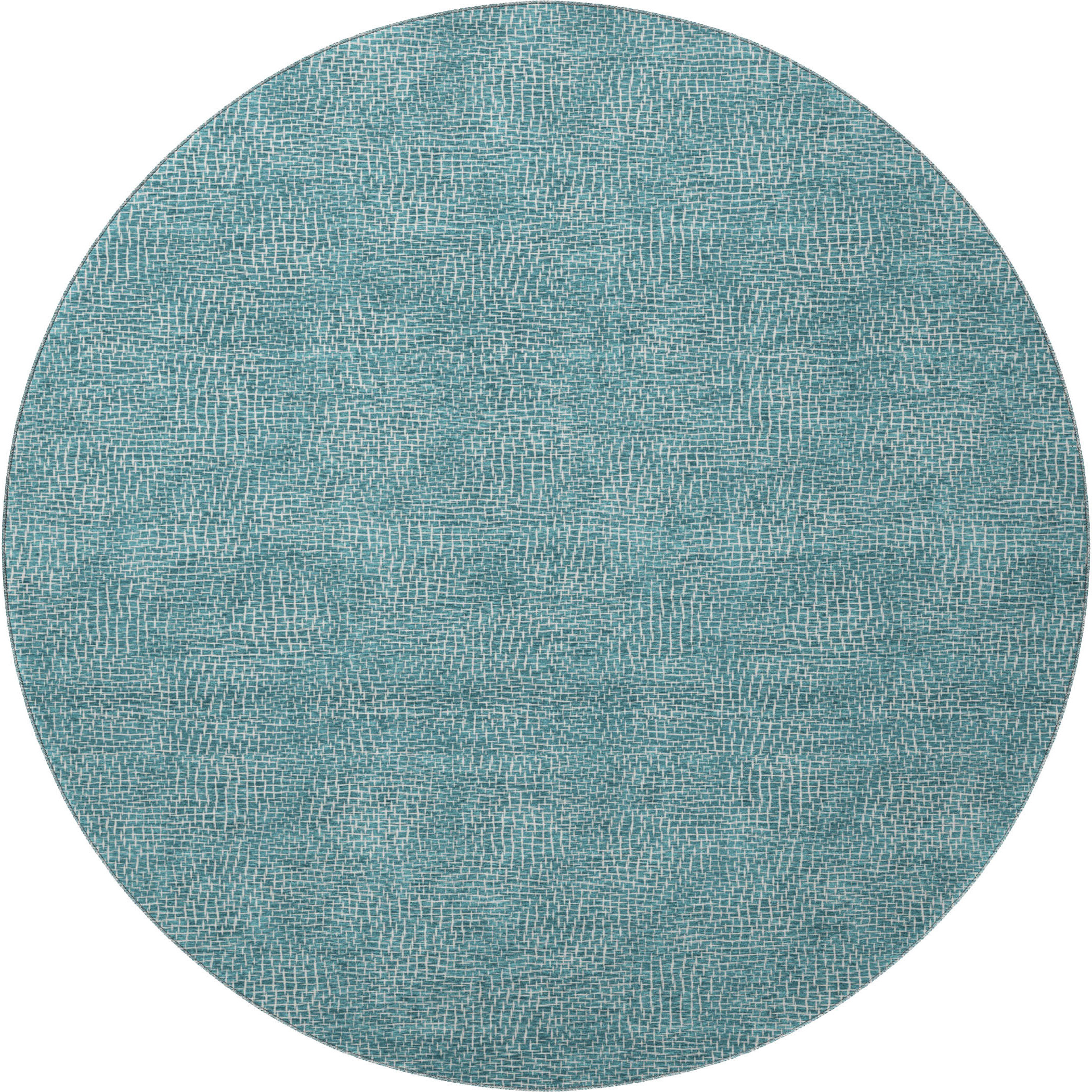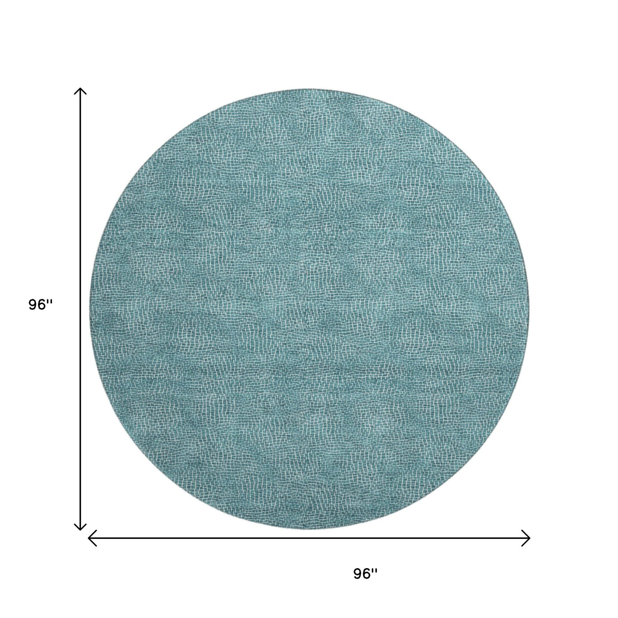 Add some artistry to your room with this 8-foot teal and ivory geometric washable round rug with uv protection. Ideal for spaces with kids and pets, this rug is stain resistant to help repel dirt and spilled liquids. Built to last, this rug crafted from polyester fibers is known for its durability and long lasting appeal. Rugs are a great way to showcase your style, hide imperfections, warm your home and reduce noise. This larger sized, transitional styled rug is ready to create a focal point or statement piece in your room. 96.00-inch h x 96.00-inch w x 0.39-inch d.