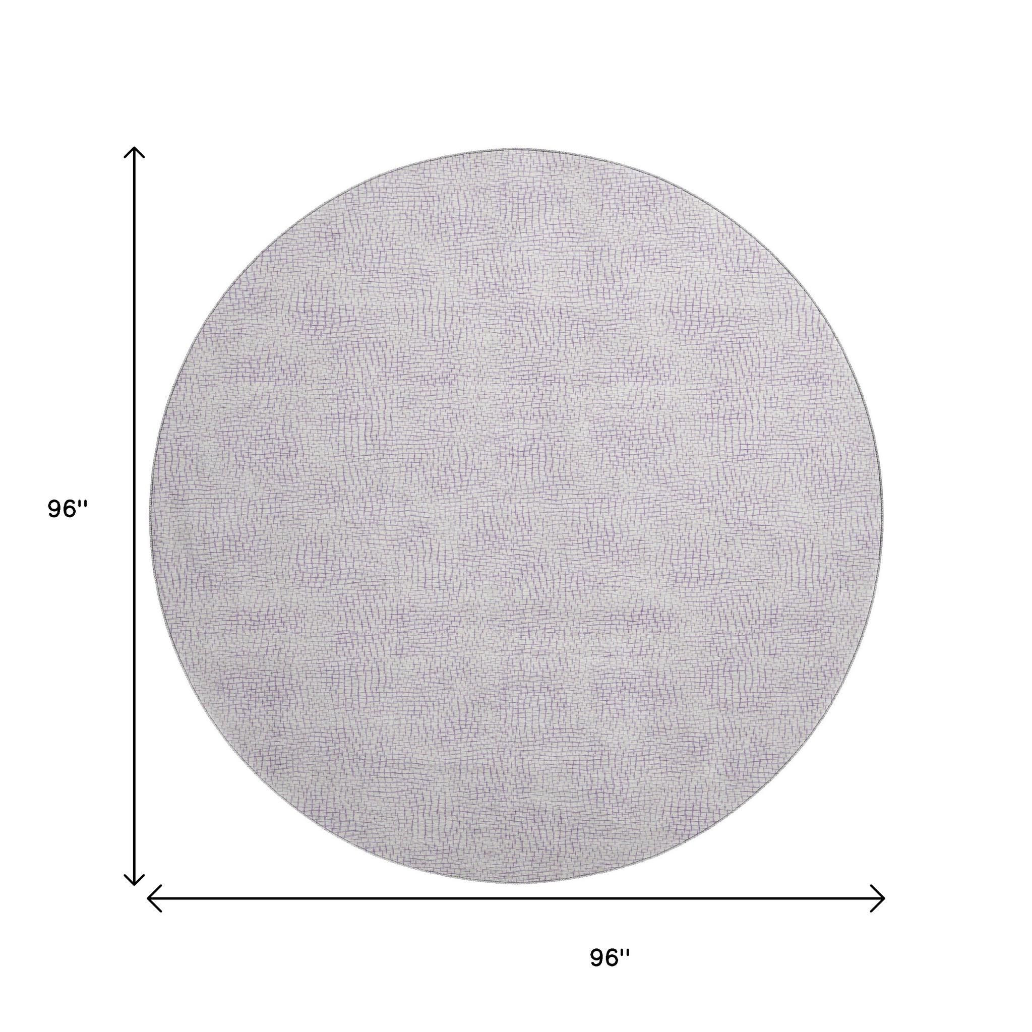 Set an inviting tone in your space with this 8-foot lavender and ivory geometric washable round rug with uv protection. Ideal for spaces with kids and pets, this rug is stain resistant to help repel dirt and spilled liquids. Built to last, this rug crafted from polyester fibers is known for its durability and long lasting appeal. Rugs are a great way to showcase your style, hide imperfections, warm your home and reduce noise. This larger sized, transitional styled rug is ready to create a focal point or statement piece in your room. 96.00-inch h x 96.00-inch w x 0.39-inch d.