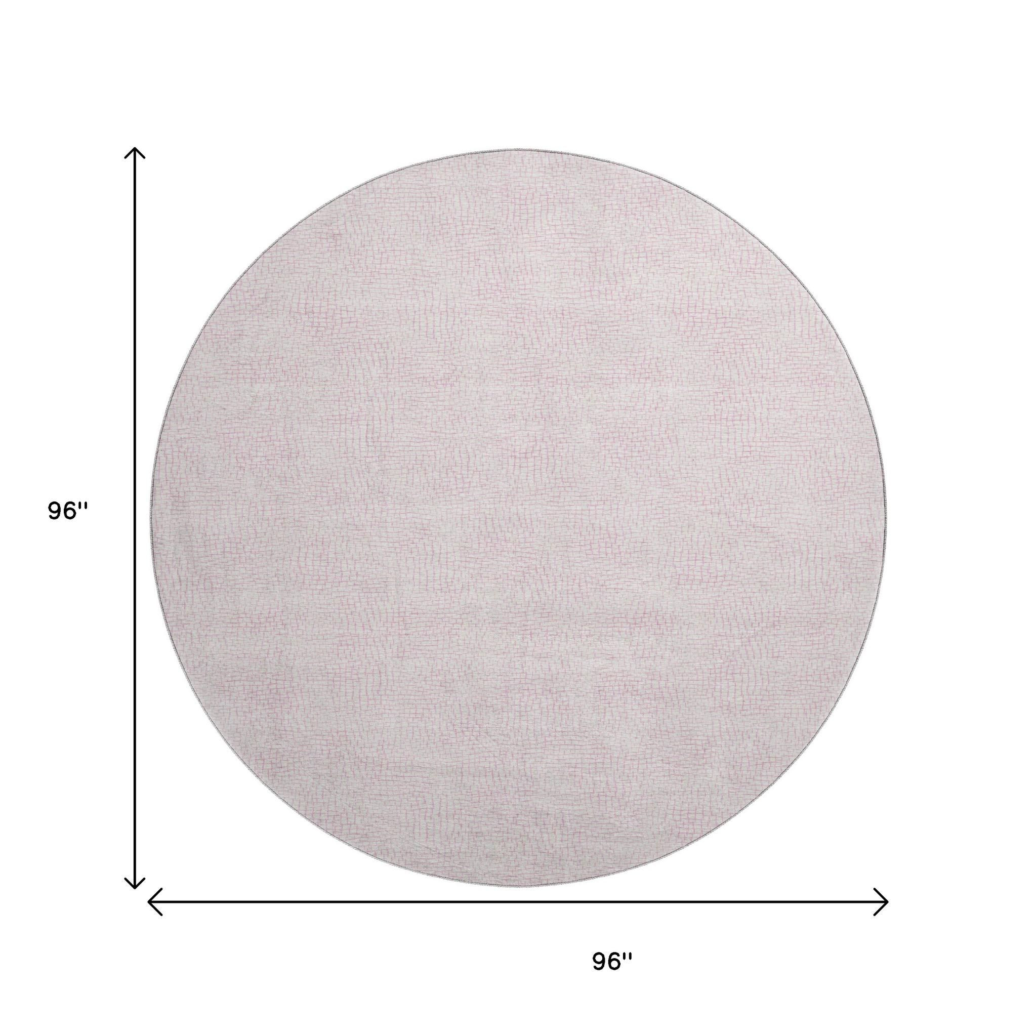 This 8-foot pink and ivory geometric washable round rug with uv protection, is a great way to add warmth to a room. Ideal for spaces with kids and pets, this rug is stain resistant to help repel dirt and spilled liquids. Built to last, this rug crafted from polyester fibers is known for its durability and long lasting appeal. Rugs are a great way to showcase your style, hide imperfections, warm your home and reduce noise. This larger sized, transitional styled rug is ready to create a focal point or statement piece in your room. 96.00-inch h x 96.00-inch w x 0.39-inch d.