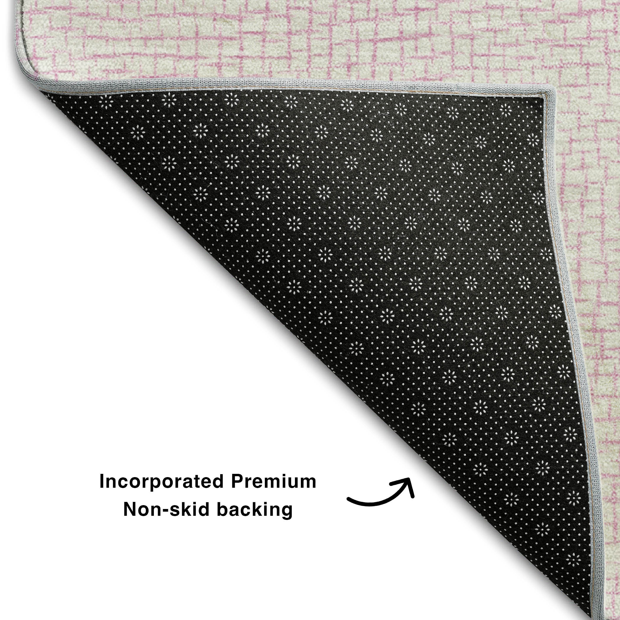 Set an inviting tone in your space with this 8-foot x 10-foot pink and ivory geometric washable area rug with uv protection. Ideal for spaces with kids and pets, this rug is stain resistant to help repel dirt and spilled liquids. Built to last, this rug crafted from polyester fibers is known for its durability and long lasting appeal. Rugs are a great way to showcase your style, hide imperfections, warm your home and reduce noise. This larger sized, transitional styled rug is ready to create a focal point or statement piece in your room. 96.00-inch h x 120.00-inch w x 0.39-inch d.