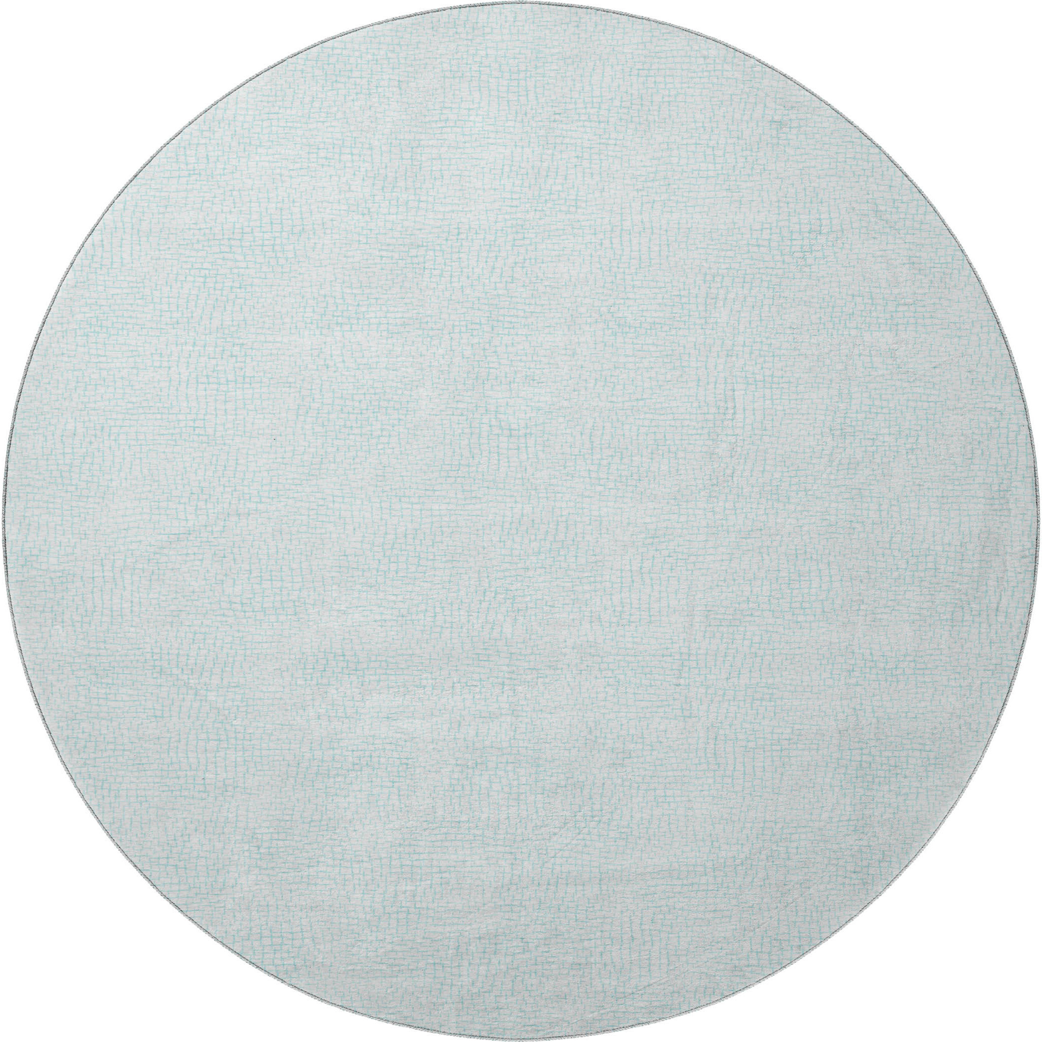Add great coloration and comfortable texture to your space with this 8-foot sky blue and ivory geometric washable round rug with uv protection. Ideal for spaces with kids and pets, this rug is stain resistant to help repel dirt and spilled liquids. Built to last, this rug crafted from polyester fibers is known for its durability and long lasting appeal. Rugs are a great way to showcase your style, hide imperfections, warm your home and reduce noise. This larger sized, transitional styled rug is ready to create a focal point or statement piece in your room. 96.00-inch h x 96.00-inch w x 0.39-inch d.