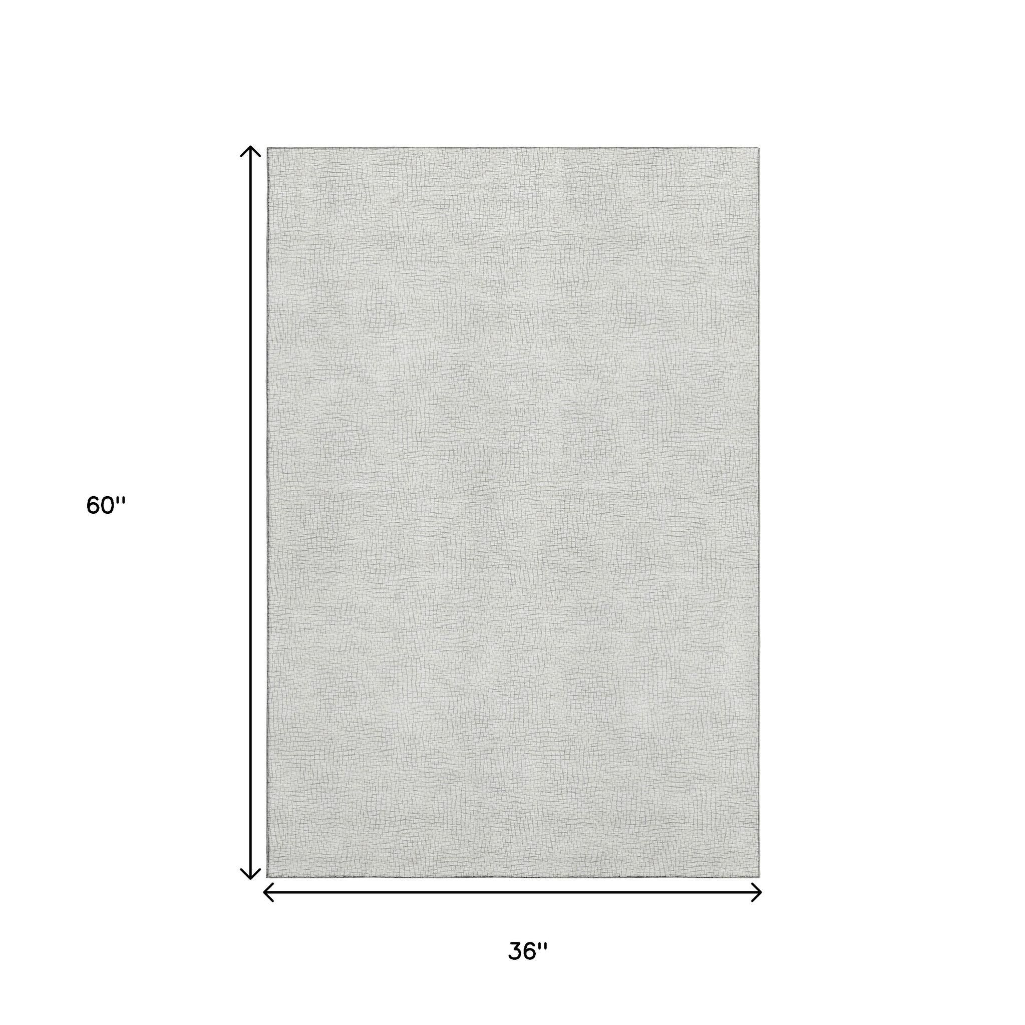 This 3-foot x 5-foot silver and ivory geometric washable area rug with uv protection, is a great way to add warmth to a room. Ideal for spaces with kids and pets, this rug is stain resistant to help repel dirt and spilled liquids. Built to last, this rug crafted from polyester fibers is known for its durability and long lasting appeal. Rugs are a great way to showcase your style, hide imperfections, warm your home and reduce noise. This smaller sized, transitional styled rug is just what you need for your walkway, bedside, in front of door, cabinet, refrigerator, or chair. 36.00-inch h x 60.00-inch w x 0.39-inch d.