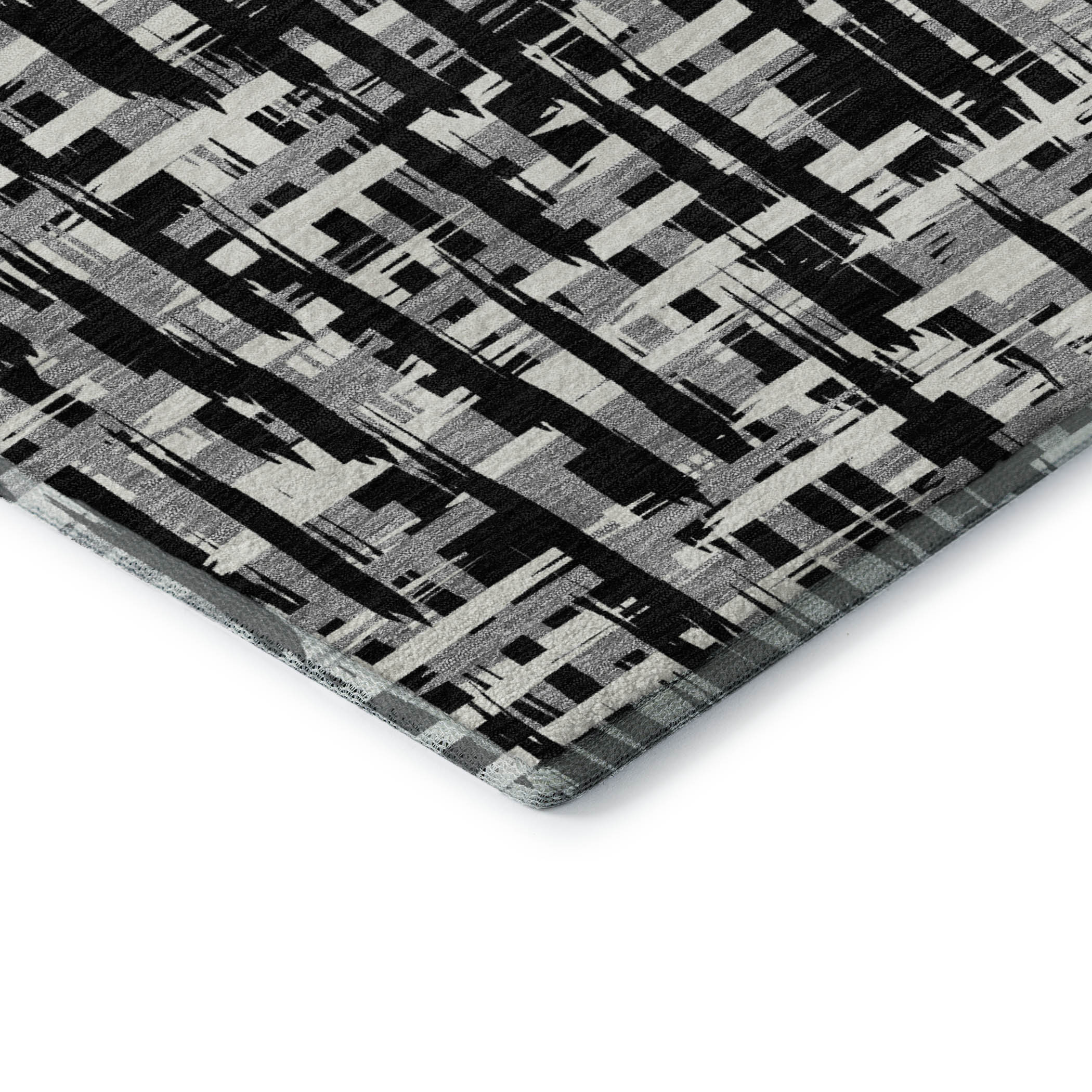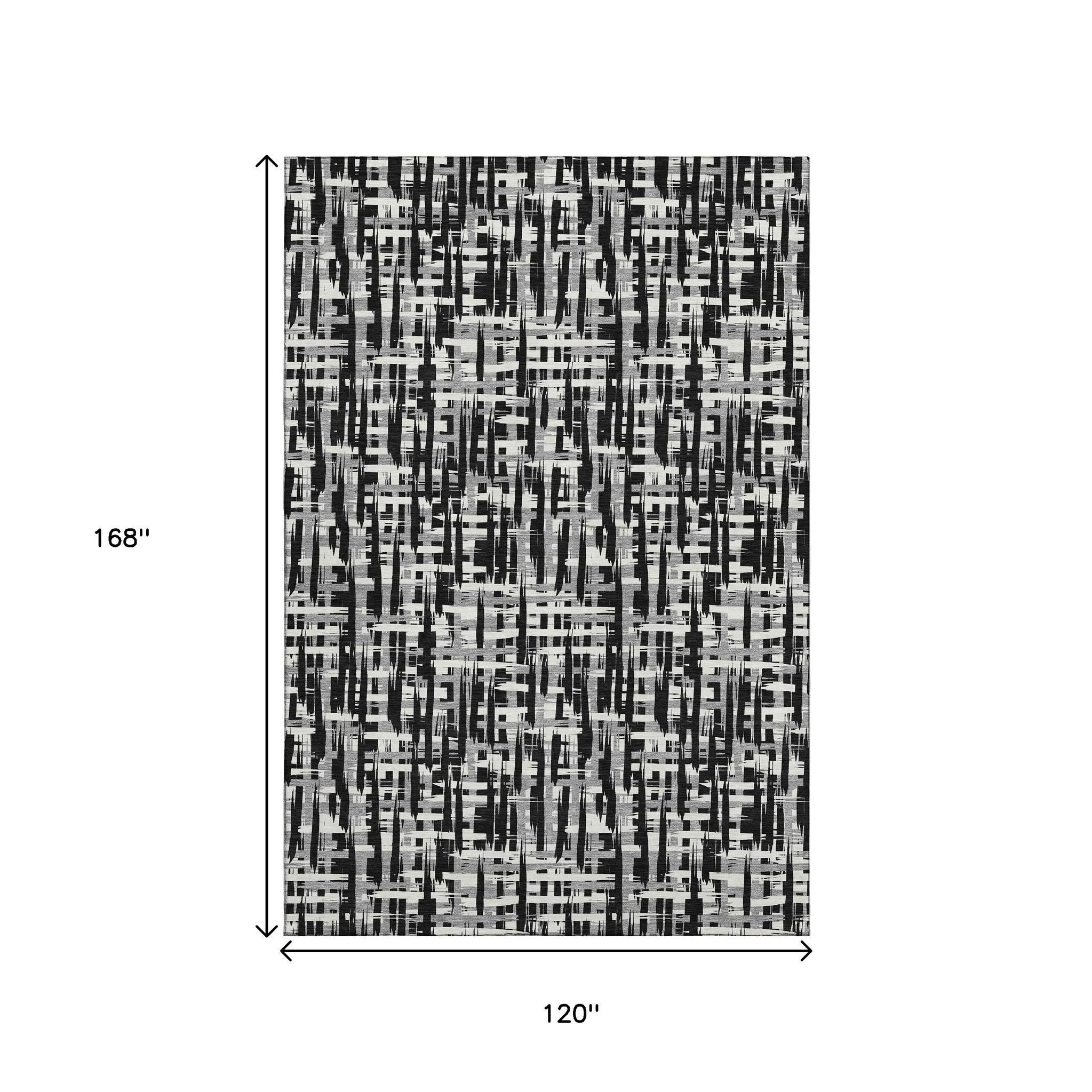 Add some artistry to your room with this 10-foot x 14-foot black ivory and gray abstract geometric washable area rug with uv protection. Ideal for spaces with kids and pets, this rug is stain resistant to help repel dirt and spilled liquids. Built to last, this rug crafted from polyester fibers is known for its durability and long lasting appeal. Rugs are a great way to showcase your style, hide imperfections, warm your home and reduce noise. This larger sized, transitional styled rug is ready to create a focal point or statement piece in your room. 120.00-inch h x 168.00-inch w x 0.39-inch d.