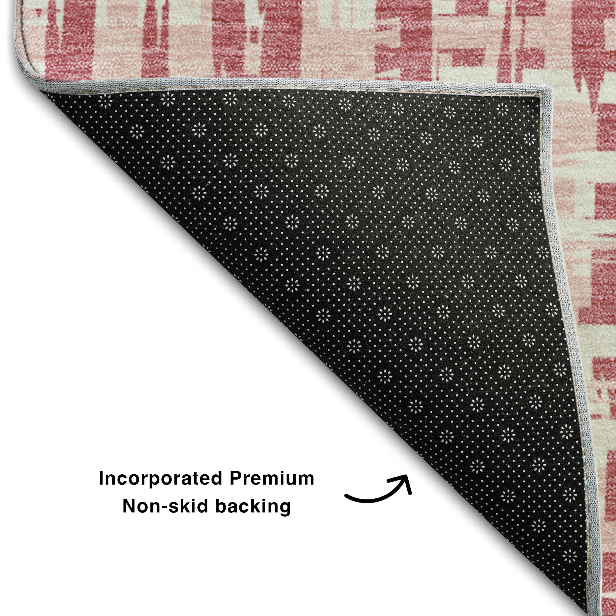 Add great coloration and comfortable texture to your space with this 9-foot x 12-foot blush pink and ivory abstract geometric washable area rug with uv protection. Ideal for spaces with kids and pets, this rug is stain resistant to help repel dirt and spilled liquids. Built to last, this rug crafted from polyester fibers is known for its durability and long lasting appeal. Rugs are a great way to showcase your style, hide imperfections, warm your home and reduce noise. This larger sized, transitional styled rug is ready to create a focal point or statement piece in your room. 108.00-inch h x 144.00-inch w x 0.39-inch d.