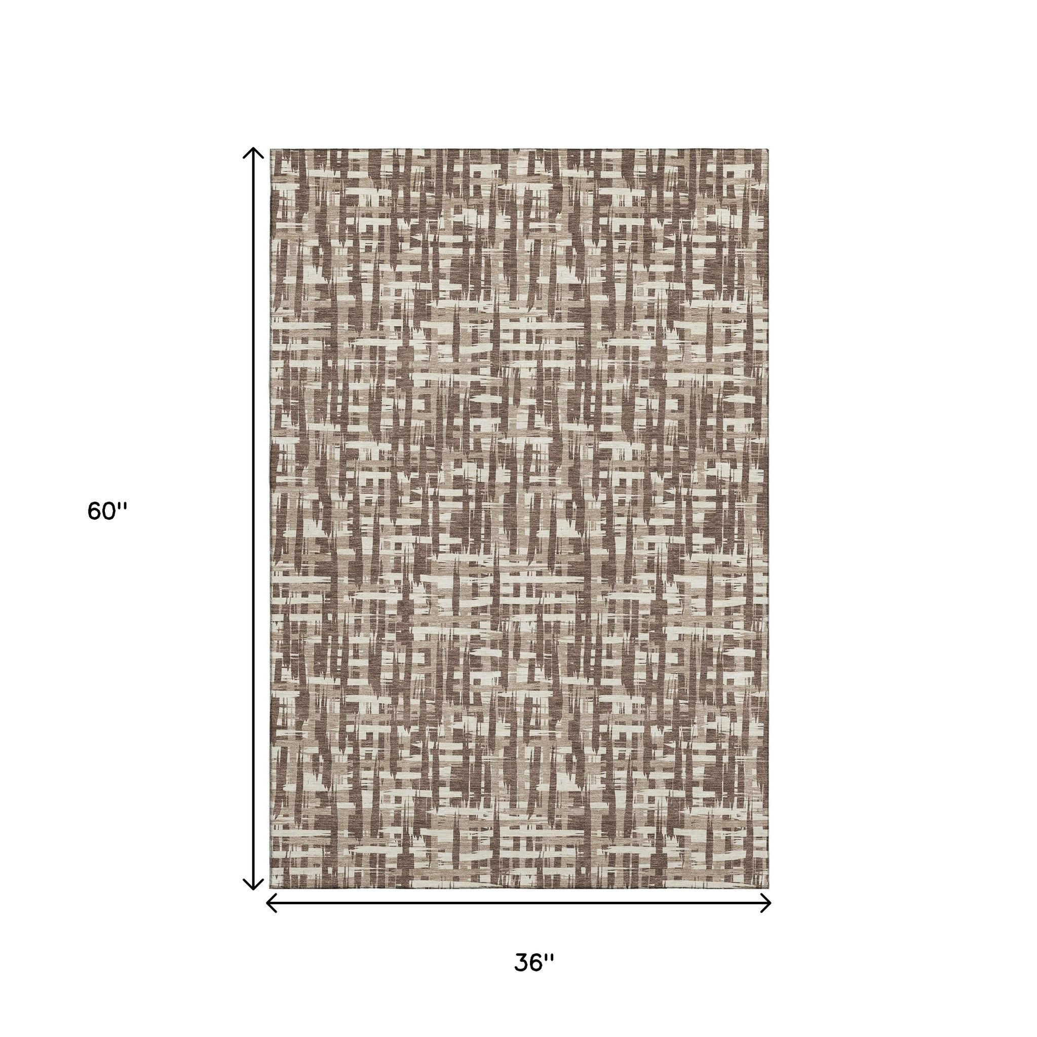 This 3-foot x 5-foot brown beige and ivory abstract geometric washable area rug with uv protection, is a great way to add warmth to a room. Ideal for spaces with kids and pets, this rug is stain resistant to help repel dirt and spilled liquids. Built to last, this rug crafted from polyester fibers is known for its durability and long lasting appeal. Rugs are a great way to showcase your style, hide imperfections, warm your home and reduce noise. This smaller sized, transitional styled rug is just what you need for your walkway, bedside, in front of door, cabinet, refrigerator, or chair. 36.00-inch h x 60.00-inch w x 0.39-inch d.