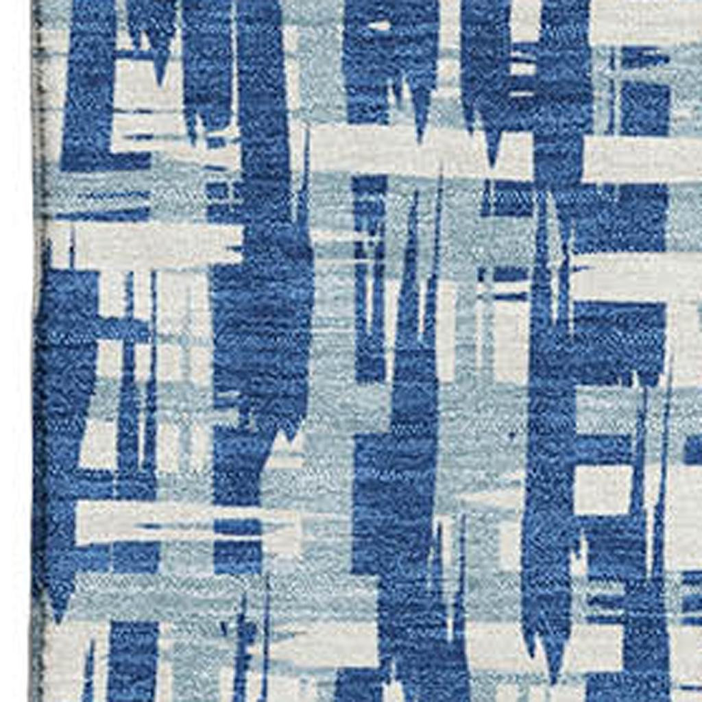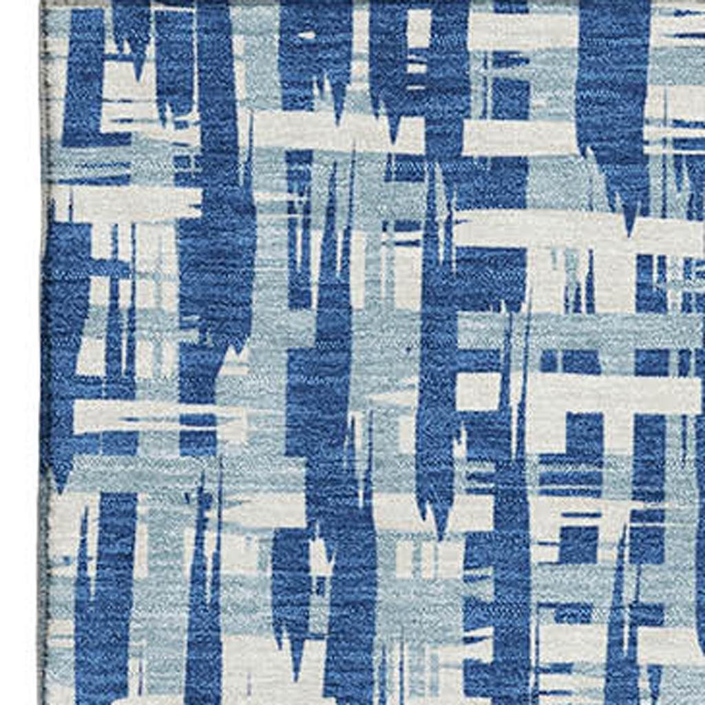 This 9-foot x 12-foot blue denim blue and ivory abstract geometric washable area rug with uv protection, is a great way to add warmth to a room. Ideal for spaces with kids and pets, this rug is stain resistant to help repel dirt and spilled liquids. Built to last, this rug crafted from polyester fibers is known for its durability and long lasting appeal. Rugs are a great way to showcase your style, hide imperfections, warm your home and reduce noise. This larger sized, transitional styled rug is ready to create a focal point or statement piece in your room. 108.00-inch h x 144.00-inch w x 0.39-inch d.