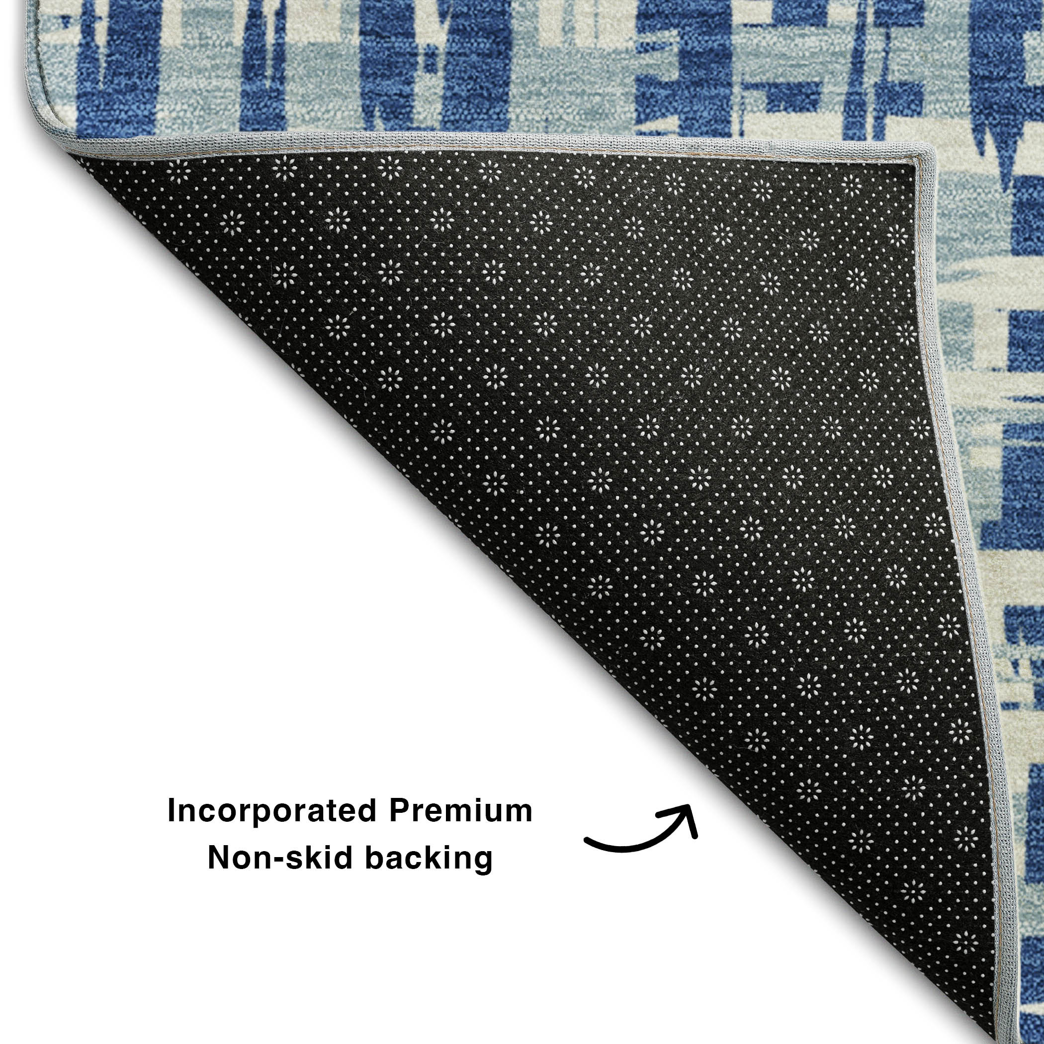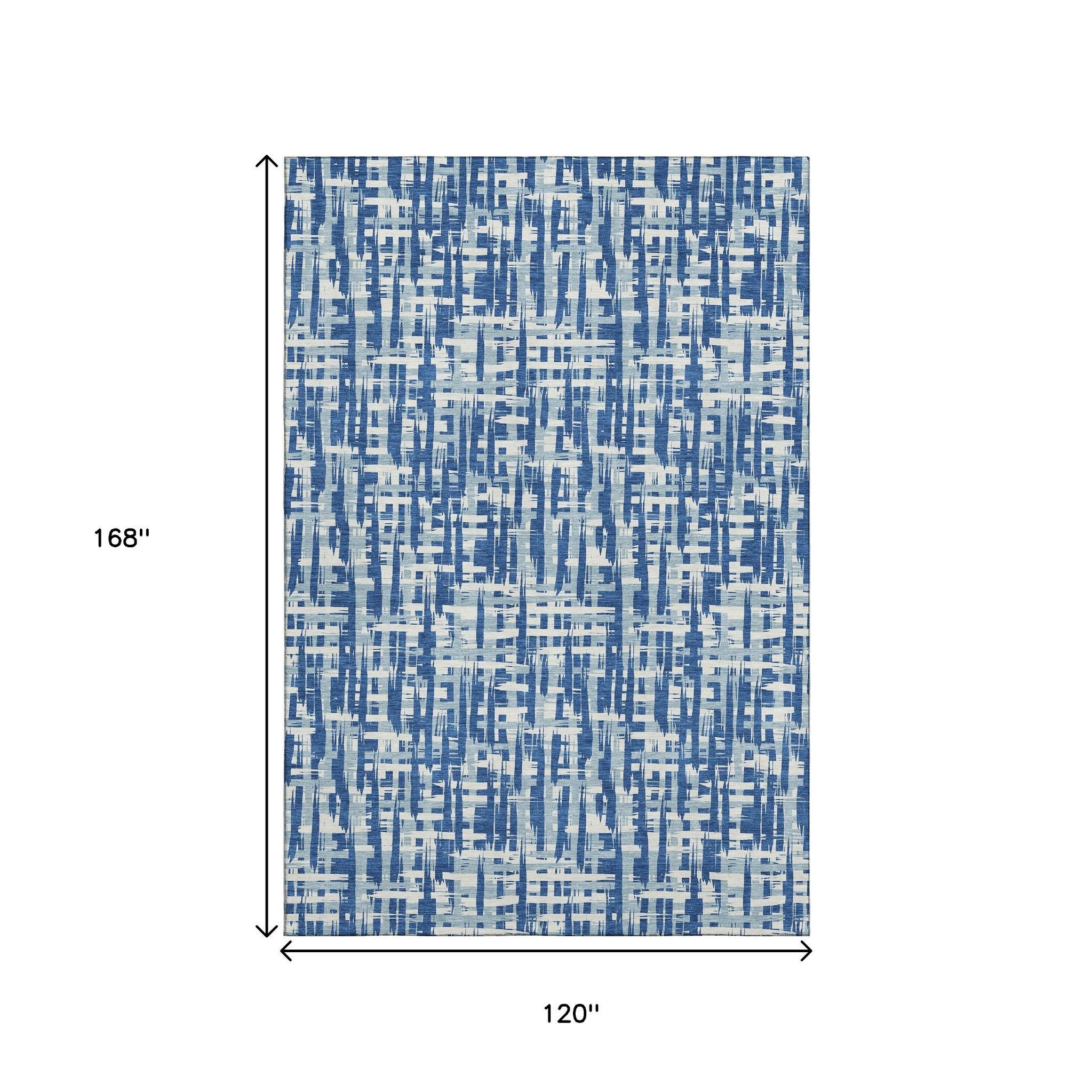 Set an inviting tone in your space with this 10-foot x 14-foot blue denim blue and ivory abstract geometric washable area rug with uv protection. Ideal for spaces with kids and pets, this rug is stain resistant to help repel dirt and spilled liquids. Built to last, this rug crafted from polyester fibers is known for its durability and long lasting appeal. Rugs are a great way to showcase your style, hide imperfections, warm your home and reduce noise. This larger sized, transitional styled rug is ready to create a focal point or statement piece in your room. 120.00-inch h x 168.00-inch w x 0.39-inch d.