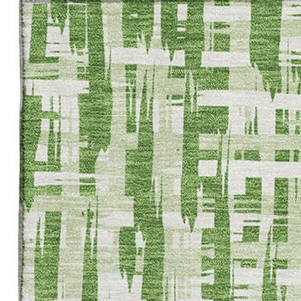 This 3-foot x 5-foot green artichoke green and ivory abstract geometric washable area rug with uv protection, is a great way to add warmth to a room. Ideal for spaces with kids and pets, this rug is stain resistant to help repel dirt and spilled liquids. Built to last, this rug crafted from polyester fibers is known for its durability and long lasting appeal. Rugs are a great way to showcase your style, hide imperfections, warm your home and reduce noise. This smaller sized, transitional styled rug is just what you need for your walkway, bedside, in front of door, cabinet, refrigerator, or chair. 36.00-inch h x 60.00-inch w x 0.39-inch d.