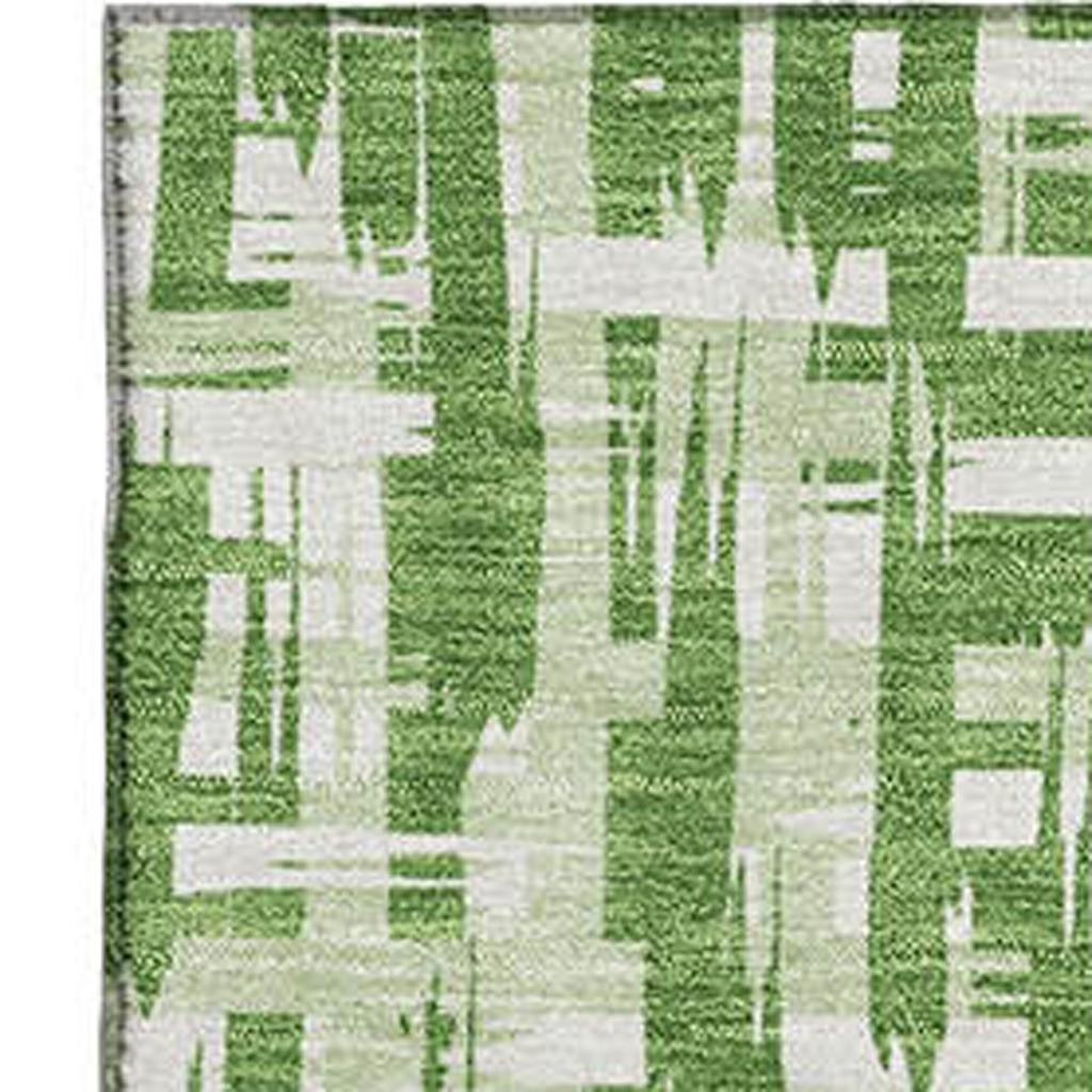 Set an inviting tone in your space with this 8-foot x 10-foot green artichoke green and ivory abstract geometric washable area rug with uv protection. Ideal for spaces with kids and pets, this rug is stain resistant to help repel dirt and spilled liquids. Built to last, this rug crafted from polyester fibers is known for its durability and long lasting appeal. Rugs are a great way to showcase your style, hide imperfections, warm your home and reduce noise. This larger sized, transitional styled rug is ready to create a focal point or statement piece in your room. 96.00-inch h x 120.00-inch w x 0.39-inch d.