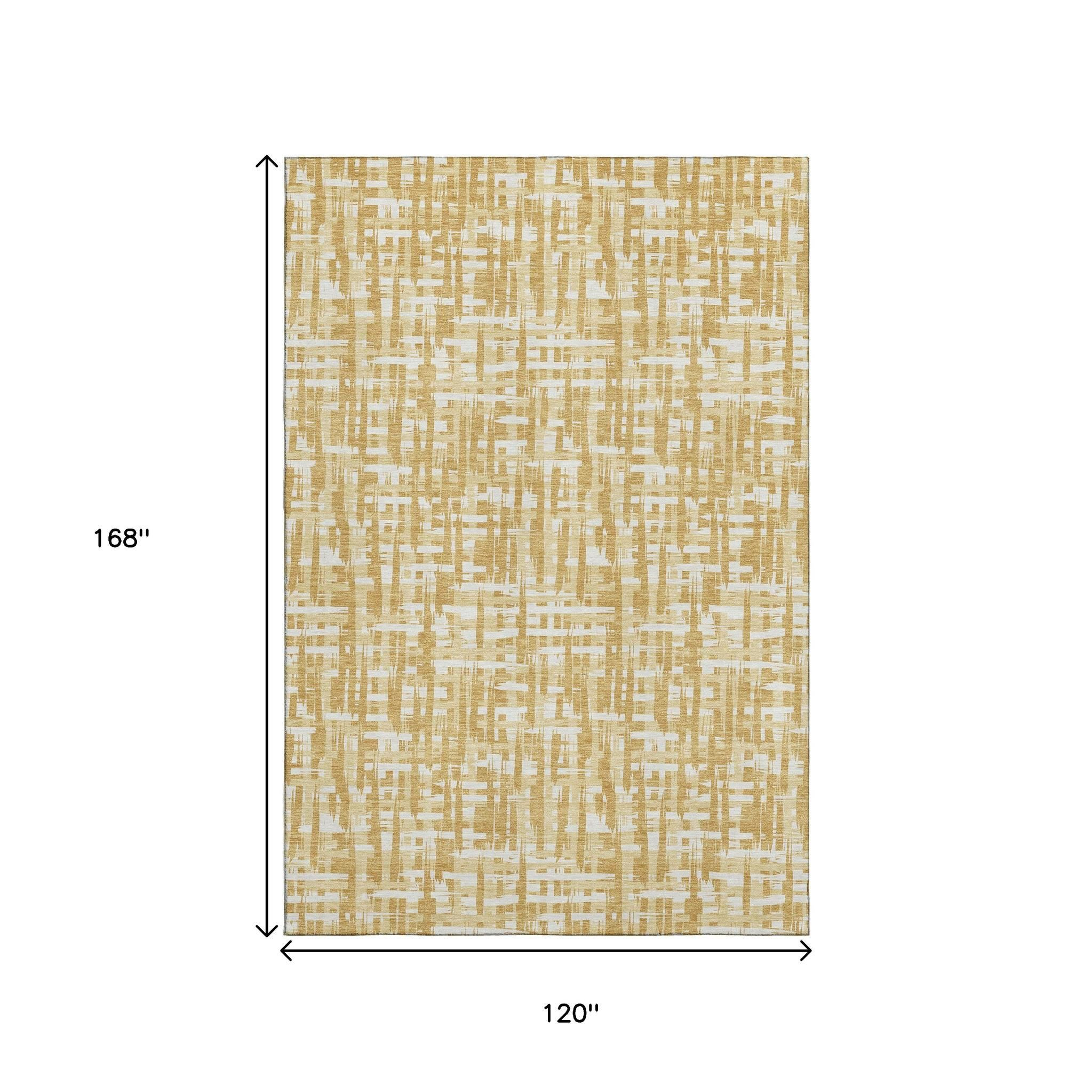 Set an inviting tone in your space with this 10-foot x 14-foot gold ivory and wheat abstract geometric washable area rug with uv protection. Ideal for spaces with kids and pets, this rug is stain resistant to help repel dirt and spilled liquids. Built to last, this rug crafted from polyester fibers is known for its durability and long lasting appeal. Rugs are a great way to showcase your style, hide imperfections, warm your home and reduce noise. This larger sized, transitional styled rug is ready to create a focal point or statement piece in your room. 120.00-inch h x 168.00-inch w x 0.39-inch d.