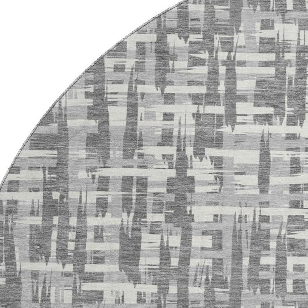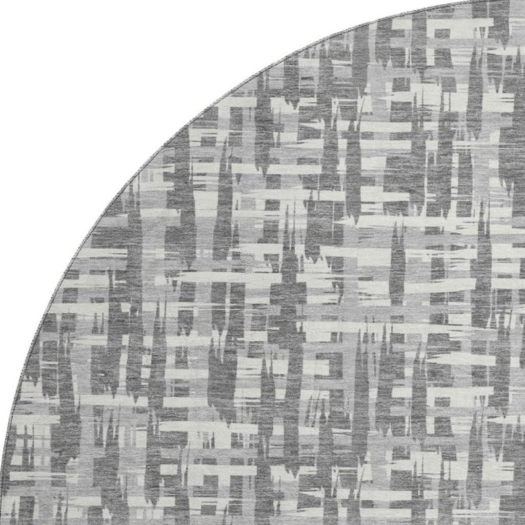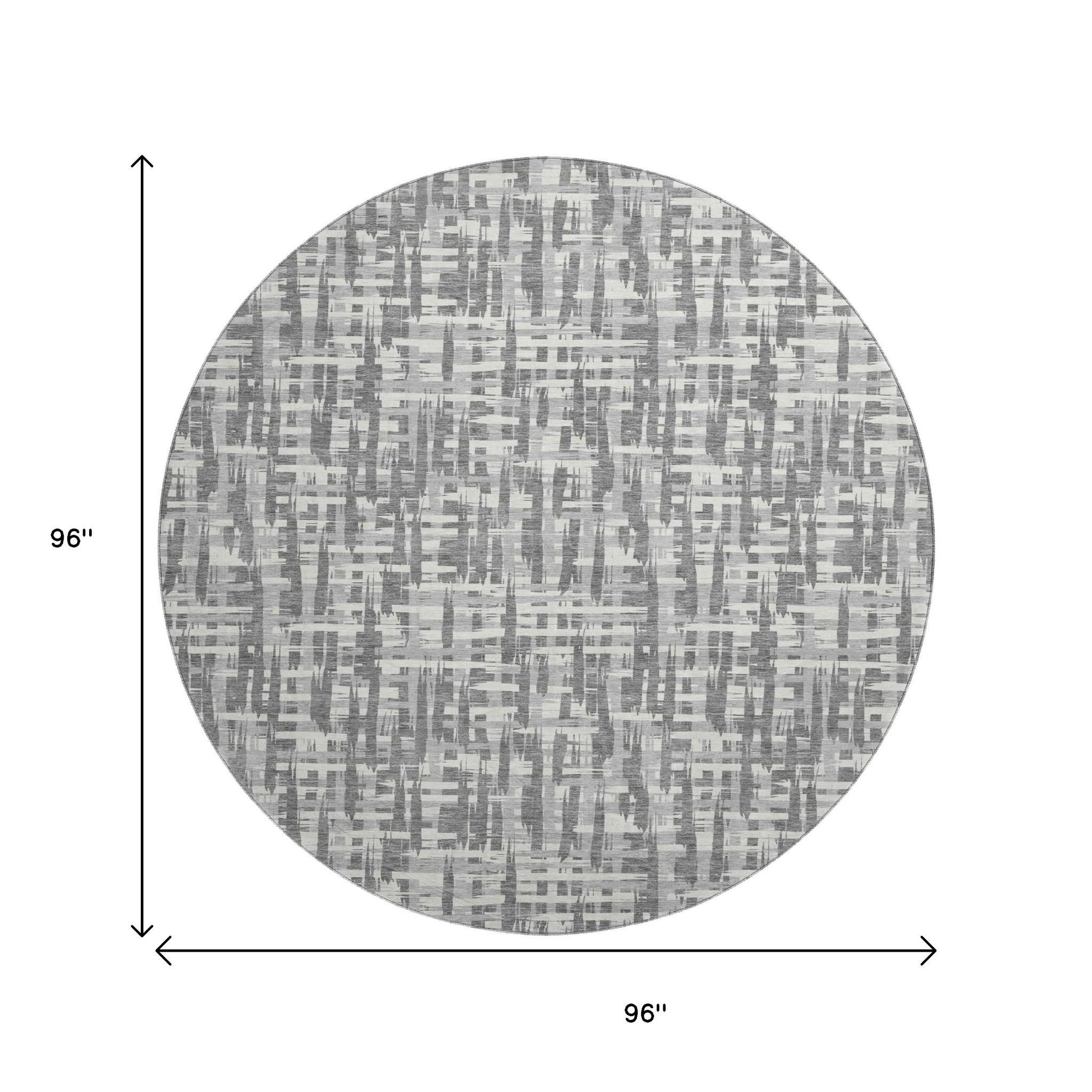 Add great coloration and comfortable texture to your space with this 8-foot gray silver and ivory abstract geometric washable round rug with uv protection. Ideal for spaces with kids and pets, this rug is stain resistant to help repel dirt and spilled liquids. Built to last, this rug crafted from polyester fibers is known for its durability and long lasting appeal. Rugs are a great way to showcase your style, hide imperfections, warm your home and reduce noise. This larger sized, transitional styled rug is ready to create a focal point or statement piece in your room. 96.00-inch h x 96.00-inch w x 0.39-inch d.