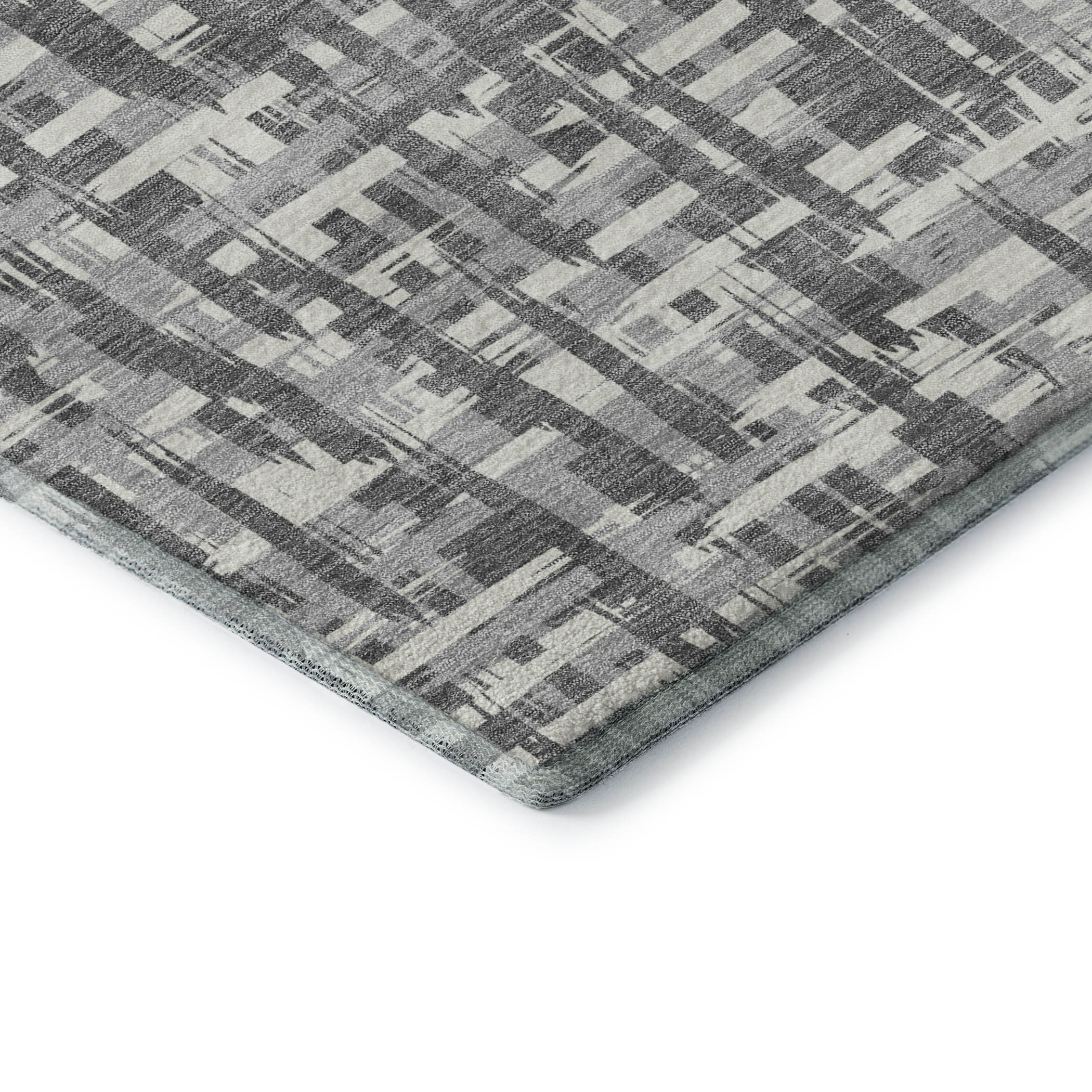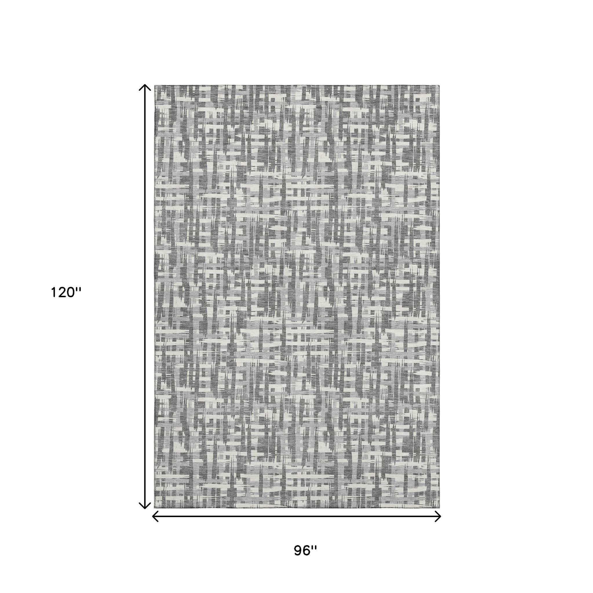 This 8-foot x 10-foot gray silver and ivory abstract geometric washable area rug with uv protection, is a great way to add warmth to a room. Ideal for spaces with kids and pets, this rug is stain resistant to help repel dirt and spilled liquids. Built to last, this rug crafted from polyester fibers is known for its durability and long lasting appeal. Rugs are a great way to showcase your style, hide imperfections, warm your home and reduce noise. This larger sized, transitional styled rug is ready to create a focal point or statement piece in your room. 96.00-inch h x 120.00-inch w x 0.39-inch d.