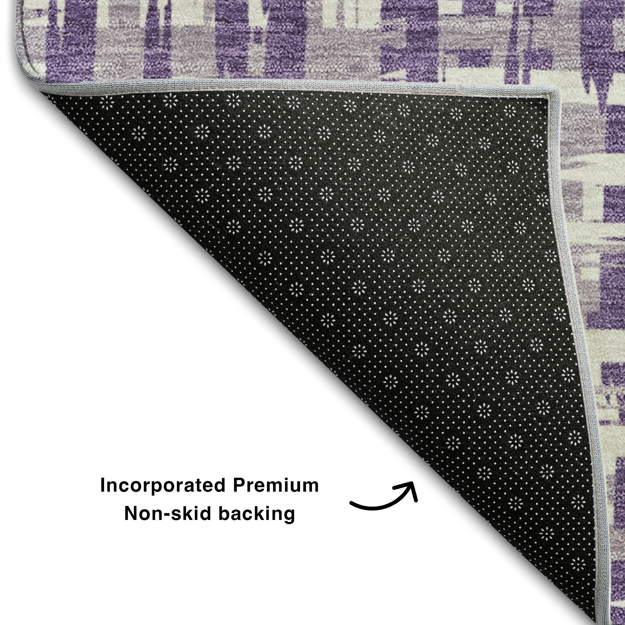 Add great coloration and comfortable texture to your space with this 3-foot x 5-foot purple ivory and lavender abstract geometric washable area rug with uv protection. Ideal for spaces with kids and pets, this rug is stain resistant to help repel dirt and spilled liquids. Built to last, this rug crafted from polyester fibers is known for its durability and long lasting appeal. Rugs are a great way to showcase your style, hide imperfections, warm your home and reduce noise. This smaller sized, transitional styled rug is just what you need for your walkway, bedside, in front of door, cabinet, refrigerator, or chair. 36.00-inch h x 60.00-inch w x 0.39-inch d.
