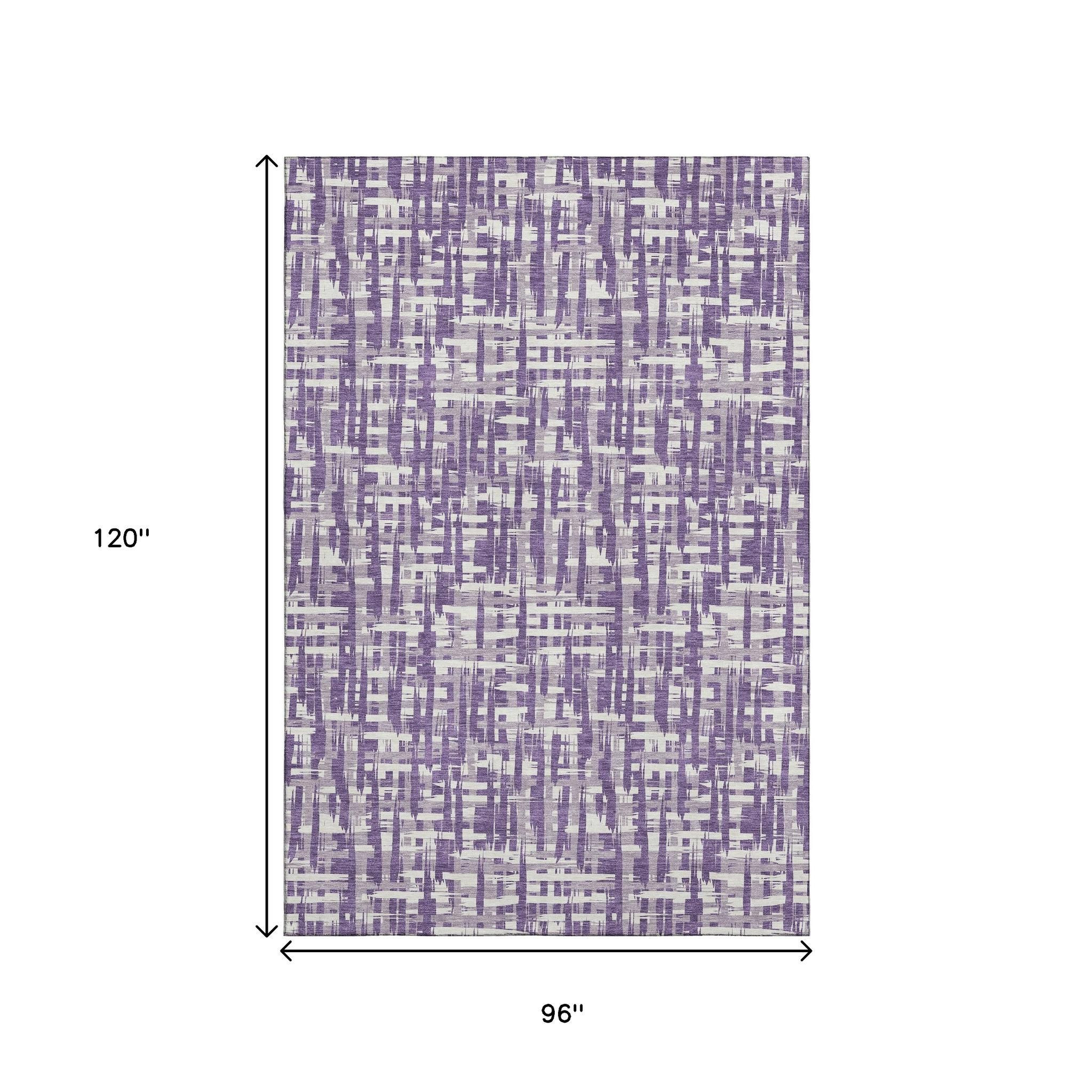 Set an inviting tone in your space with this 8-foot x 10-foot purple ivory and lavender abstract geometric washable area rug with uv protection. Ideal for spaces with kids and pets, this rug is stain resistant to help repel dirt and spilled liquids. Built to last, this rug crafted from polyester fibers is known for its durability and long lasting appeal. Rugs are a great way to showcase your style, hide imperfections, warm your home and reduce noise. This larger sized, transitional styled rug is ready to create a focal point or statement piece in your room. 96.00-inch h x 120.00-inch w x 0.39-inch d.