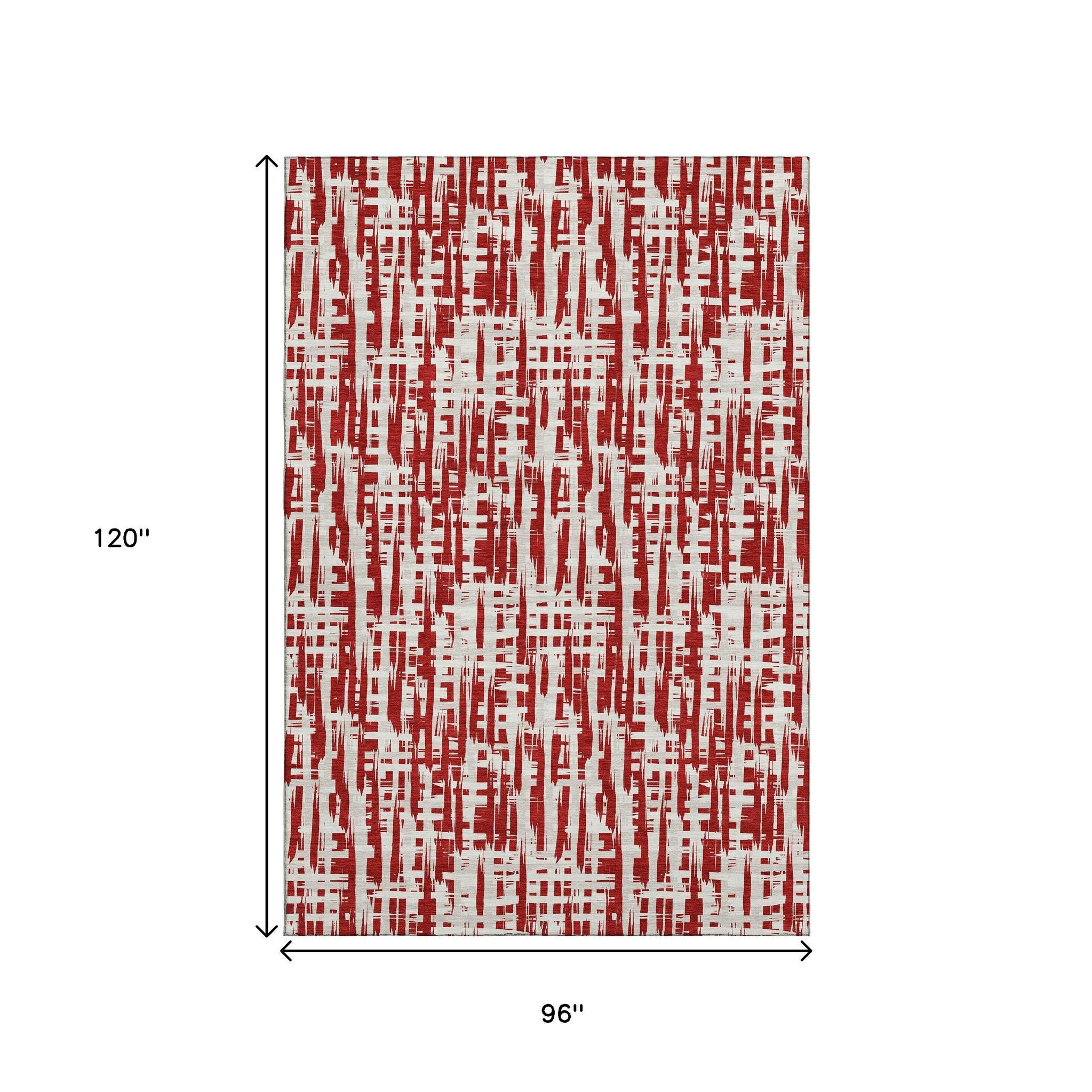 This 8-foot x 10-foot red beige and ivory abstract geometric washable area rug with uv protection, is a great way to add warmth to a room. Ideal for spaces with kids and pets, this rug is stain resistant to help repel dirt and spilled liquids. Built to last, this rug crafted from polyester fibers is known for its durability and long lasting appeal. Rugs are a great way to showcase your style, hide imperfections, warm your home and reduce noise. This larger sized, transitional styled rug is ready to create a focal point or statement piece in your room. 96.00-inch h x 120.00-inch w x 0.39-inch d.