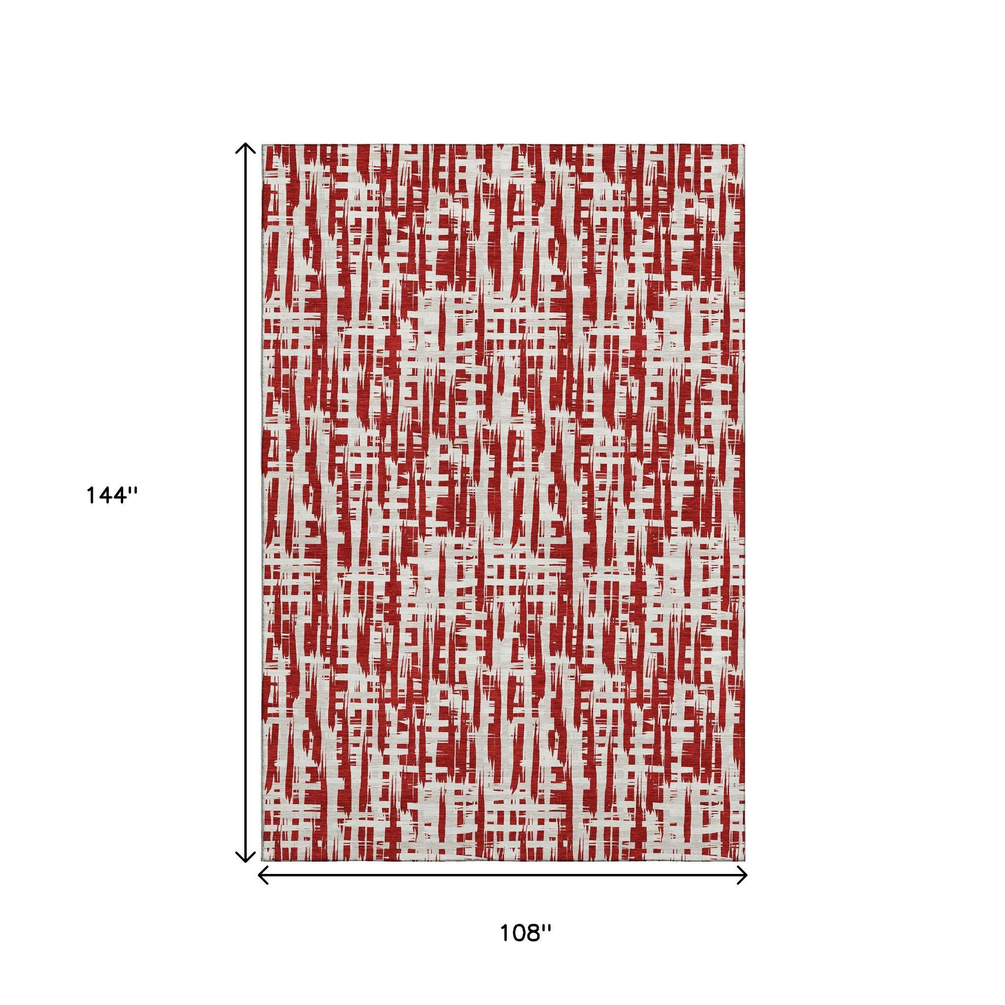 This 9-foot x 12-foot red beige and ivory abstract geometric washable area rug with uv protection, is a great way to add warmth to a room. Ideal for spaces with kids and pets, this rug is stain resistant to help repel dirt and spilled liquids. Built to last, this rug crafted from polyester fibers is known for its durability and long lasting appeal. Rugs are a great way to showcase your style, hide imperfections, warm your home and reduce noise. This larger sized, transitional styled rug is ready to create a focal point or statement piece in your room. 108.00-inch h x 144.00-inch w x 0.39-inch d.