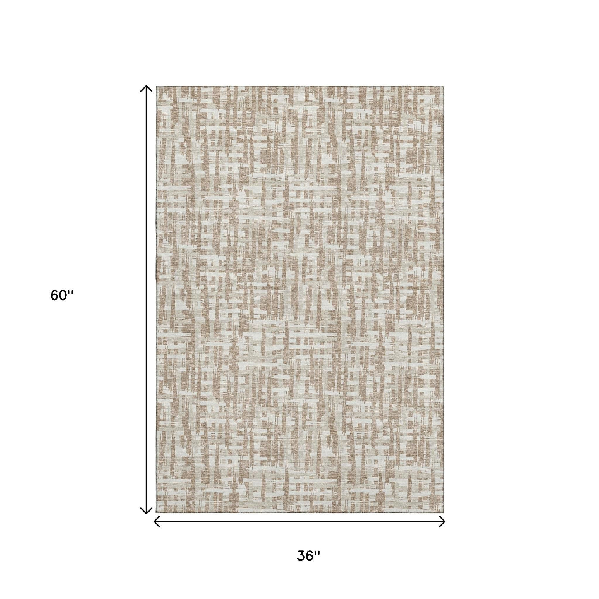 This 3-foot x 5-foot tan beige and ivory abstract geometric washable area rug with uv protection, is a great way to add warmth to a room. Ideal for spaces with kids and pets, this rug is stain resistant to help repel dirt and spilled liquids. Built to last, this rug crafted from polyester fibers is known for its durability and long lasting appeal. Rugs are a great way to showcase your style, hide imperfections, warm your home and reduce noise. This smaller sized, transitional styled rug is just what you need for your walkway, bedside, in front of door, cabinet, refrigerator, or chair. 36.00-inch h x 60.00-inch w x 0.39-inch d.