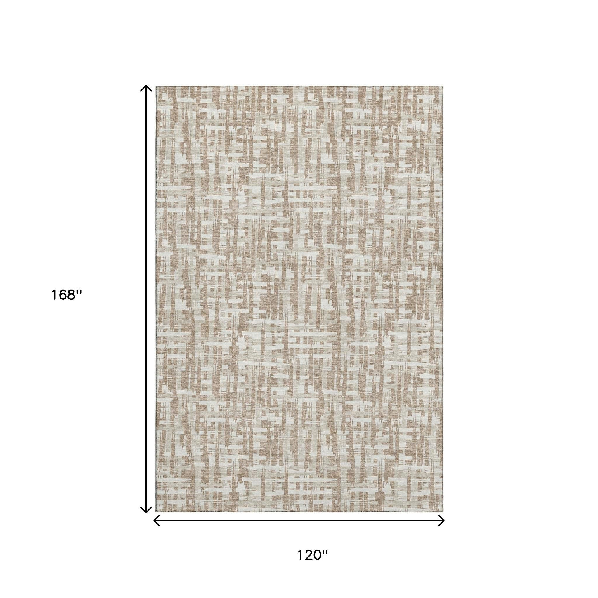 This 10-foot x 14-foot tan beige and ivory abstract geometric washable area rug with uv protection, is a great way to add warmth to a room. Ideal for spaces with kids and pets, this rug is stain resistant to help repel dirt and spilled liquids. Built to last, this rug crafted from polyester fibers is known for its durability and long lasting appeal. Rugs are a great way to showcase your style, hide imperfections, warm your home and reduce noise. This larger sized, transitional styled rug is ready to create a focal point or statement piece in your room. 120.00-inch h x 168.00-inch w x 0.39-inch d.