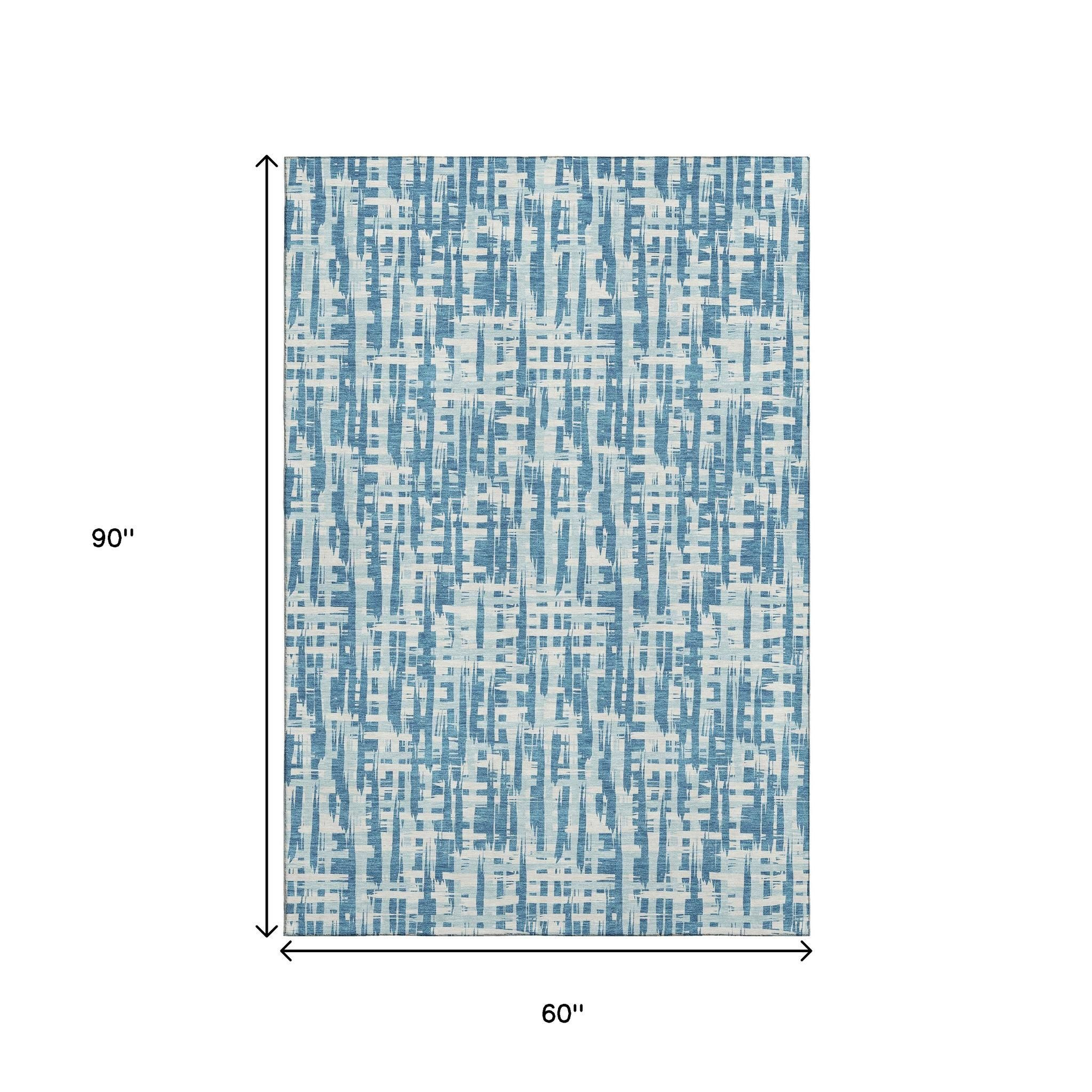 Add great coloration and comfortable texture to your space with this 5-foot x 8-foot teal ivory and gray abstract geometric washable area rug with uv protection. Ideal for spaces with kids and pets, this rug is stain resistant to help repel dirt and spilled liquids. Built to last, this rug crafted from polyester fibers is known for its durability and long lasting appeal. Rugs are a great way to showcase your style, hide imperfections, warm your home and reduce noise. This larger sized, transitional styled rug is ready to create a focal point or statement piece in your room. 60.00-inch h x 90.00-inch w x 0.39-inch d.