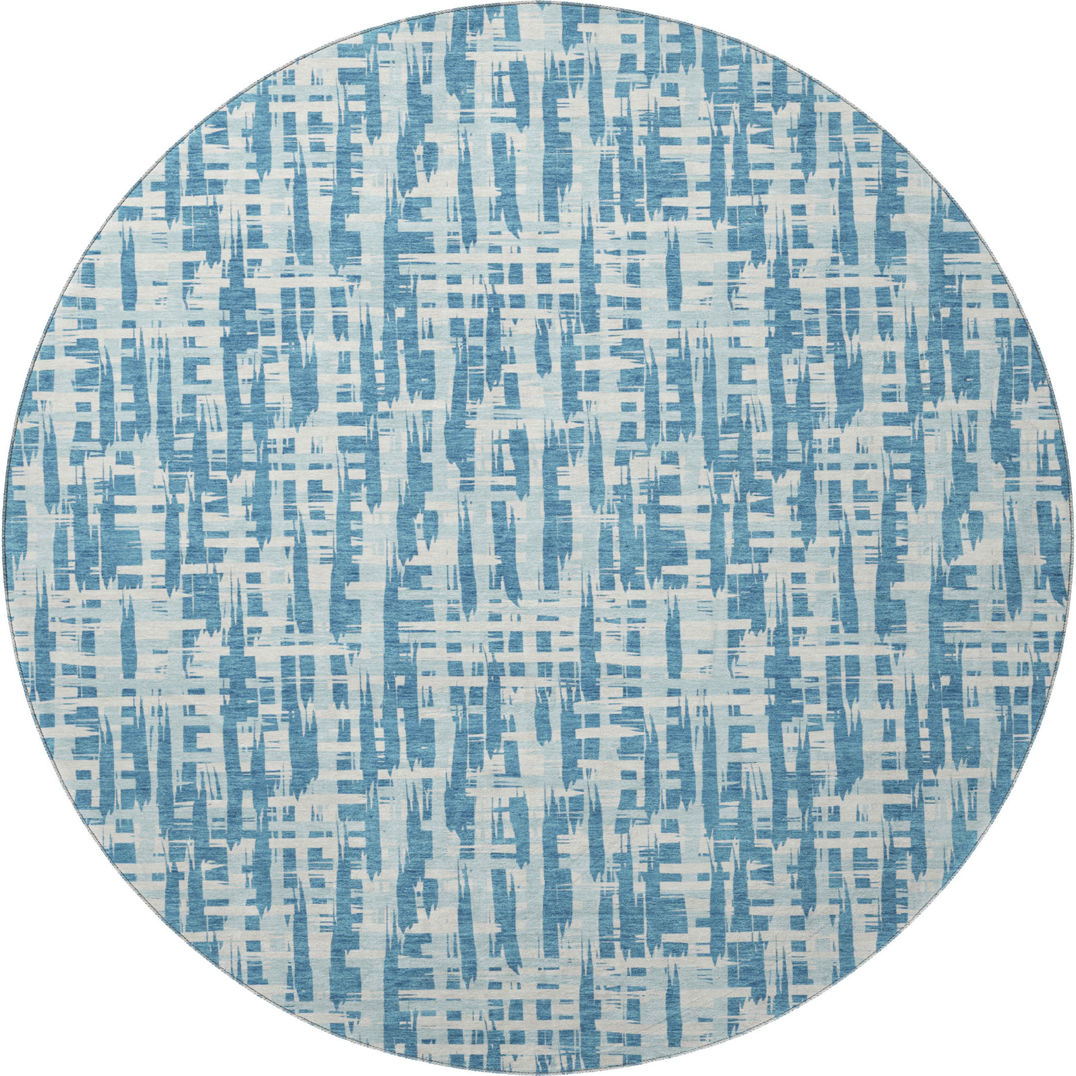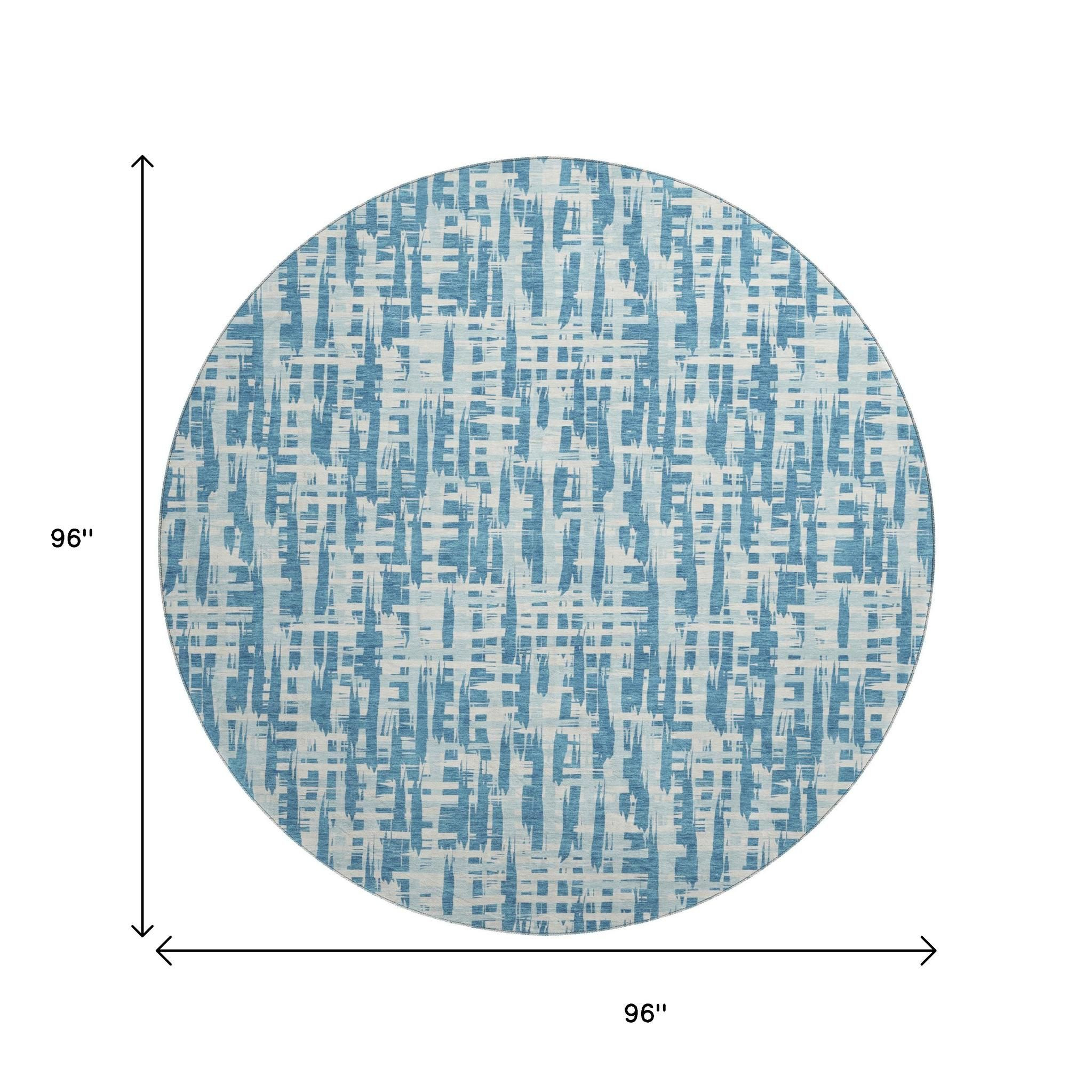 Set an inviting tone in your space with this 8-foot teal ivory and gray abstract geometric washable round rug with uv protection. Ideal for spaces with kids and pets, this rug is stain resistant to help repel dirt and spilled liquids. Built to last, this rug crafted from polyester fibers is known for its durability and long lasting appeal. Rugs are a great way to showcase your style, hide imperfections, warm your home and reduce noise. This larger sized, transitional styled rug is ready to create a focal point or statement piece in your room. 96.00-inch h x 96.00-inch w x 0.39-inch d.