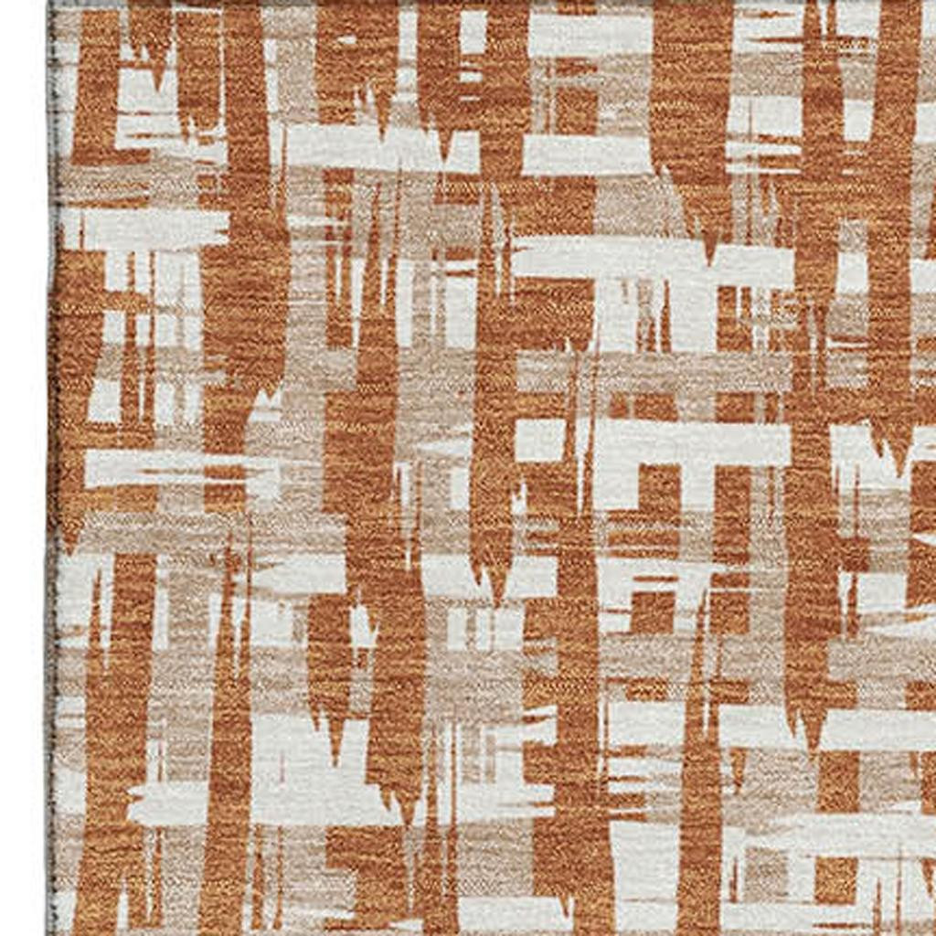 Add great coloration and comfortable texture to your space with this 3-foot x 5-foot terra cotta ivory and beige abstract geometric washable area rug with uv protection. Ideal for spaces with kids and pets, this rug is stain resistant to help repel dirt and spilled liquids. Built to last, this rug crafted from polyester fibers is known for its durability and long lasting appeal. Rugs are a great way to showcase your style, hide imperfections, warm your home and reduce noise. This smaller sized, transitional styled rug is just what you need for your walkway, bedside, in front of door, cabinet, refrigerator, or chair. 36.00-inch h x 60.00-inch w x 0.39-inch d.