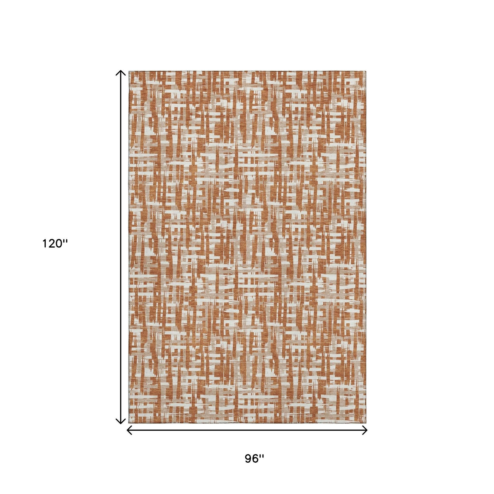 Add great coloration and comfortable texture to your space with this 8-foot x 10-foot terra cotta ivory and beige abstract geometric washable area rug with uv protection. Ideal for spaces with kids and pets, this rug is stain resistant to help repel dirt and spilled liquids. Built to last, this rug crafted from polyester fibers is known for its durability and long lasting appeal. Rugs are a great way to showcase your style, hide imperfections, warm your home and reduce noise. This larger sized, transitional styled rug is ready to create a focal point or statement piece in your room. 96.00-inch h x 120.00-inch w x 0.39-inch d.
